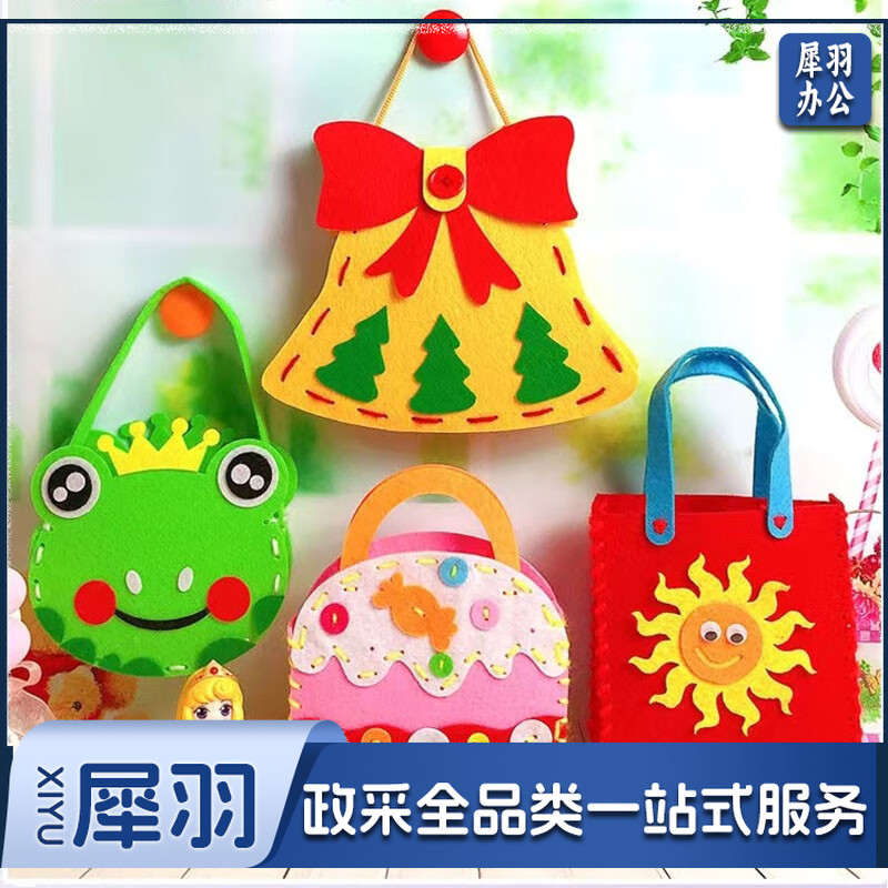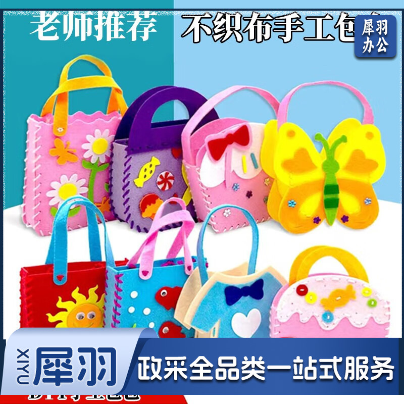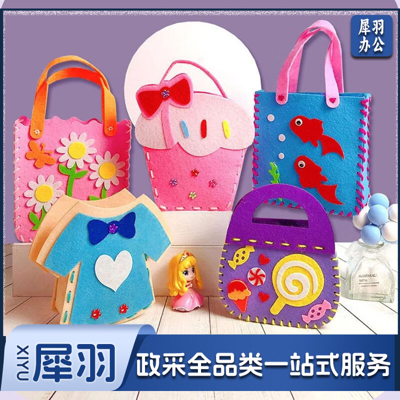 儿童不织布DIY包包手工制作材料包卡通可爱无纺布手提包生日礼物 粉色小花、冰淇淋、独角兽3个装