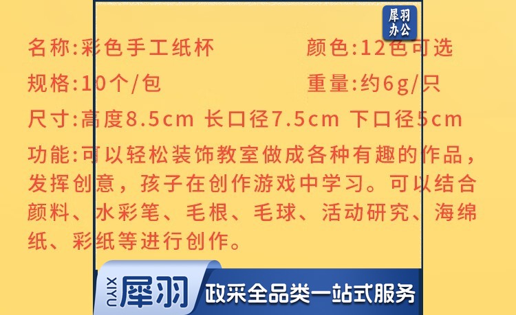10个装手工彩色纸杯子 幼儿园早教美术手工纸杯 儿童创意diy材料 12包(每色一包) 10个/包 文具套装/礼盒 游乐场/体育场馆设施