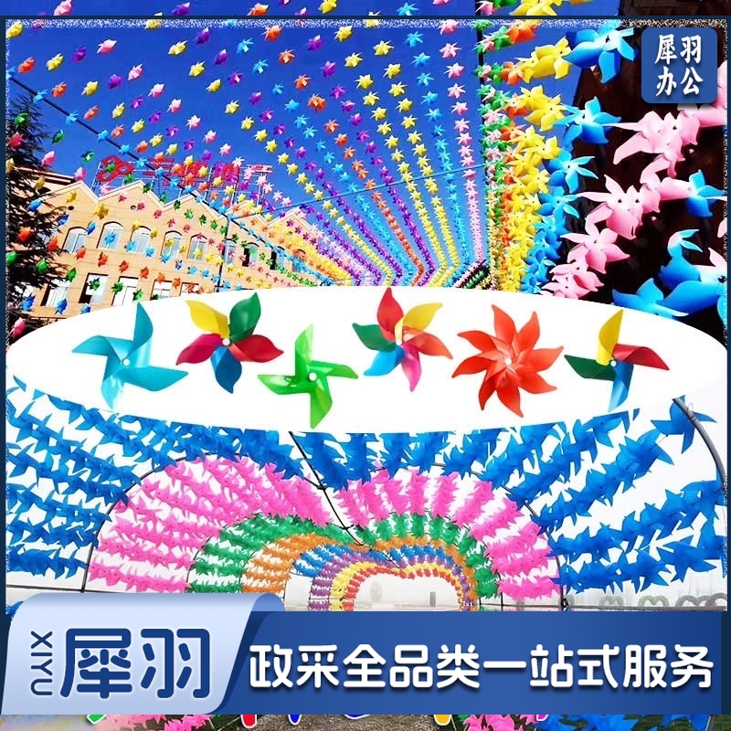 加厚悬挂旋转风车 幼儿园景区装饰串绳风车 地推儿童玩具手工风车