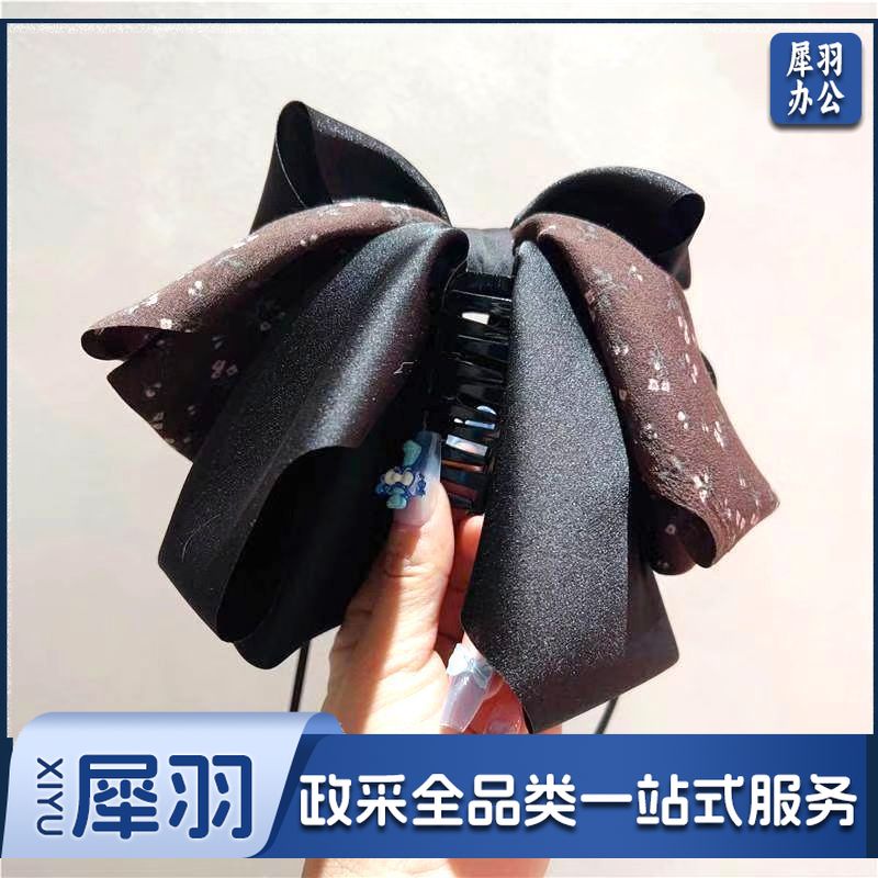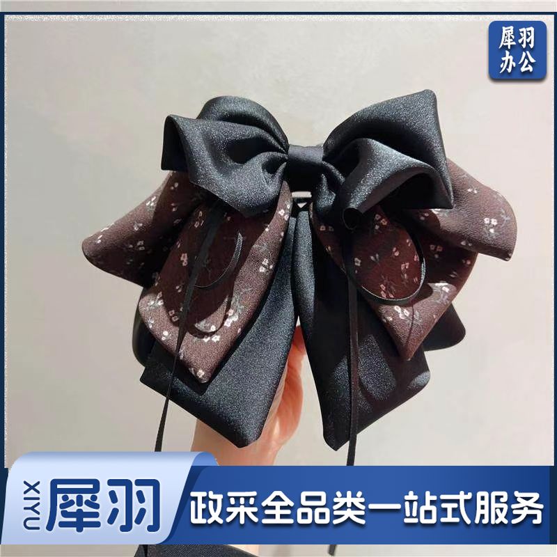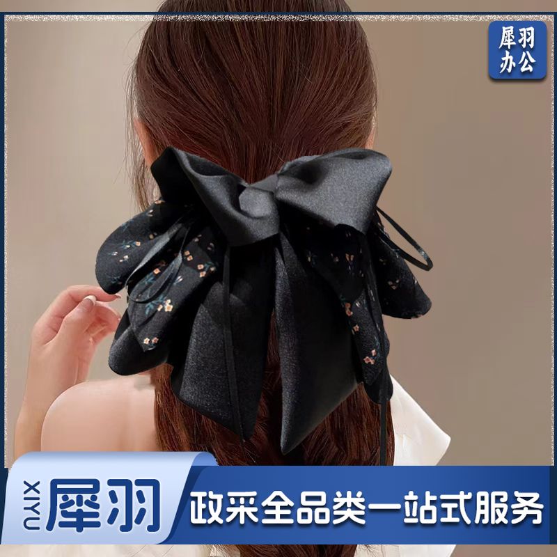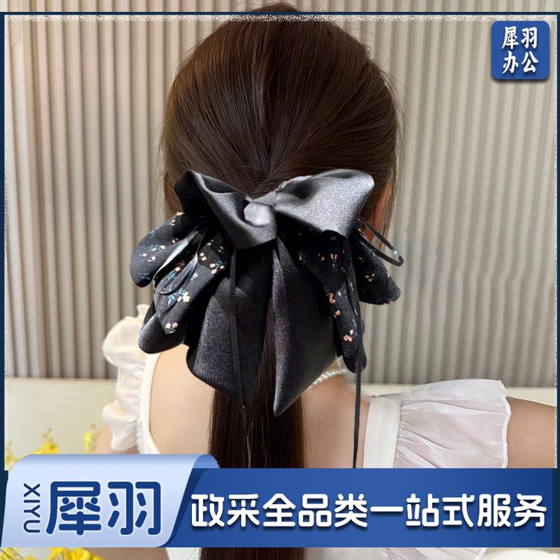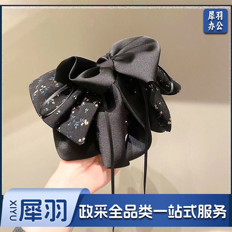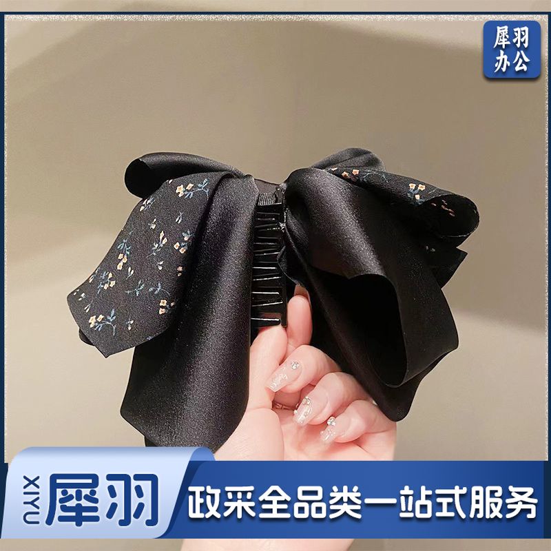 新款高级感清新碎花蝴蝶结抓夹气质飘带马尾夹后脑勺缎面发饰发夹(黑色清新碎花缎面抓夹)