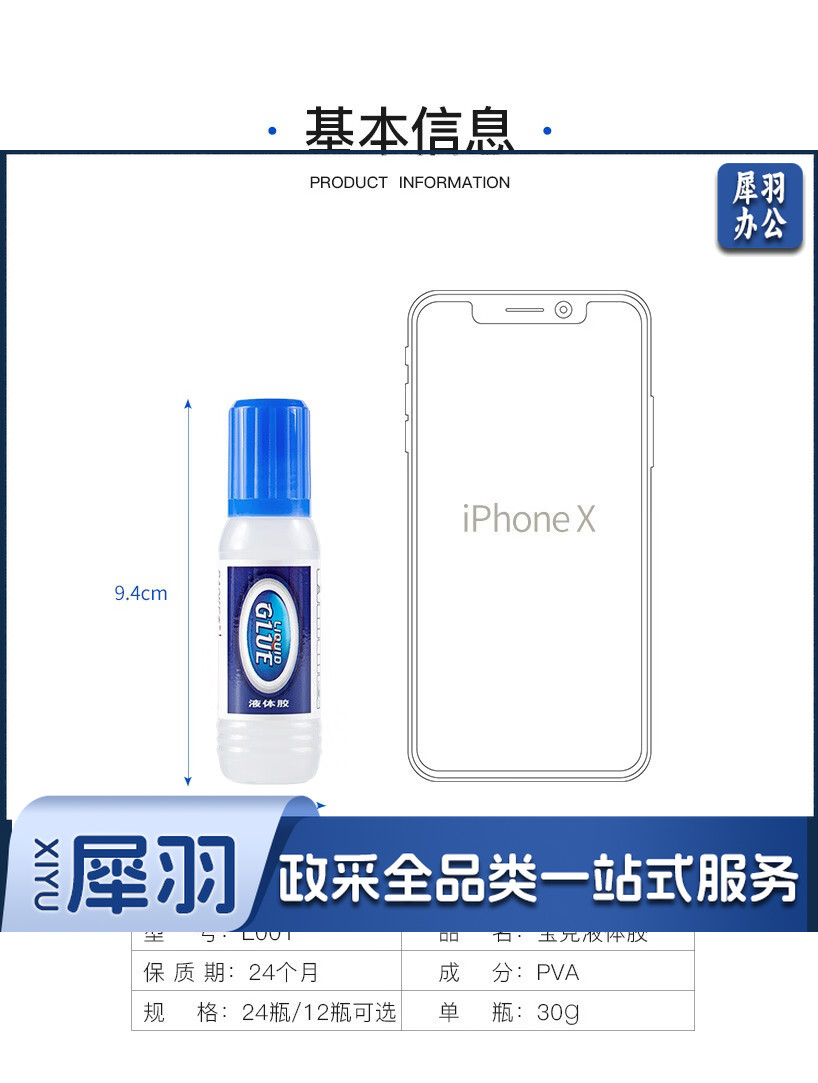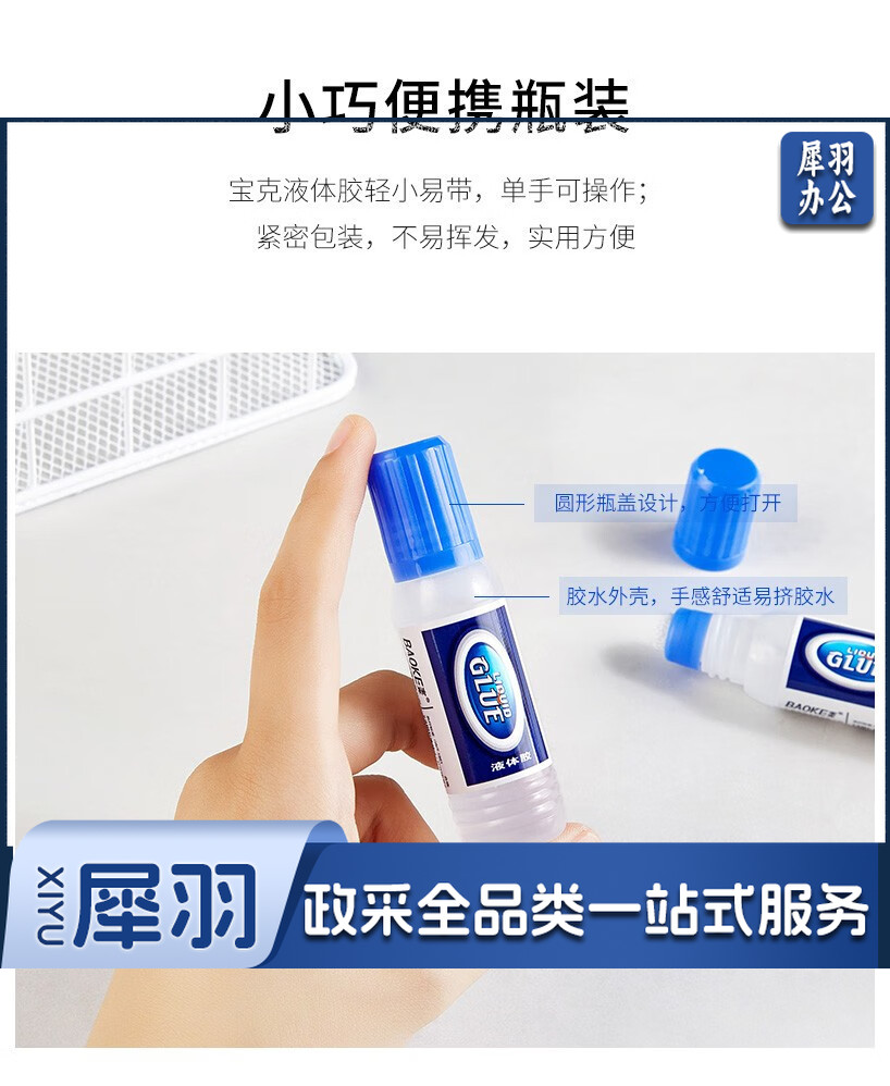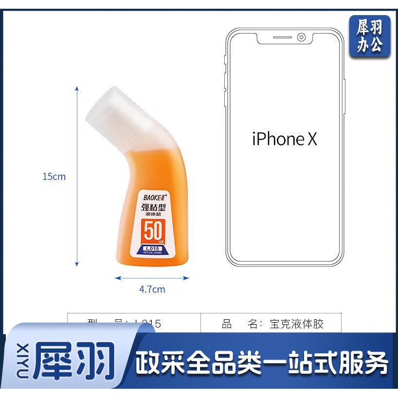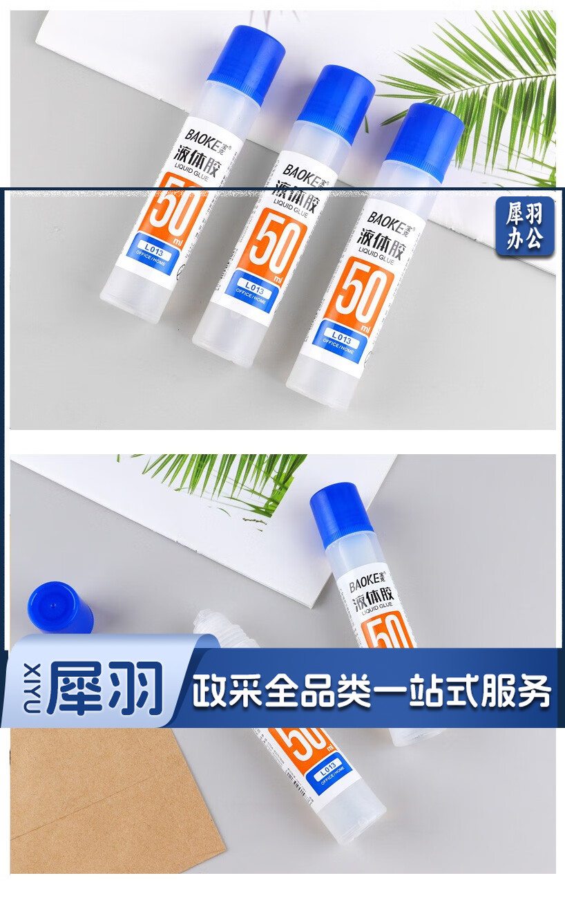 宝克(BAOKE) 高粘度海棉头液体胶 胶水 学习办公通用胶水 PVA学生手工黏胶 账会 办公用品 50g(12瓶装)L002