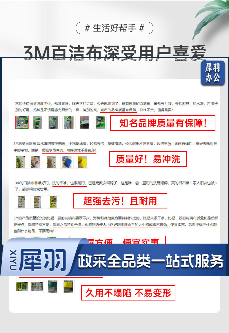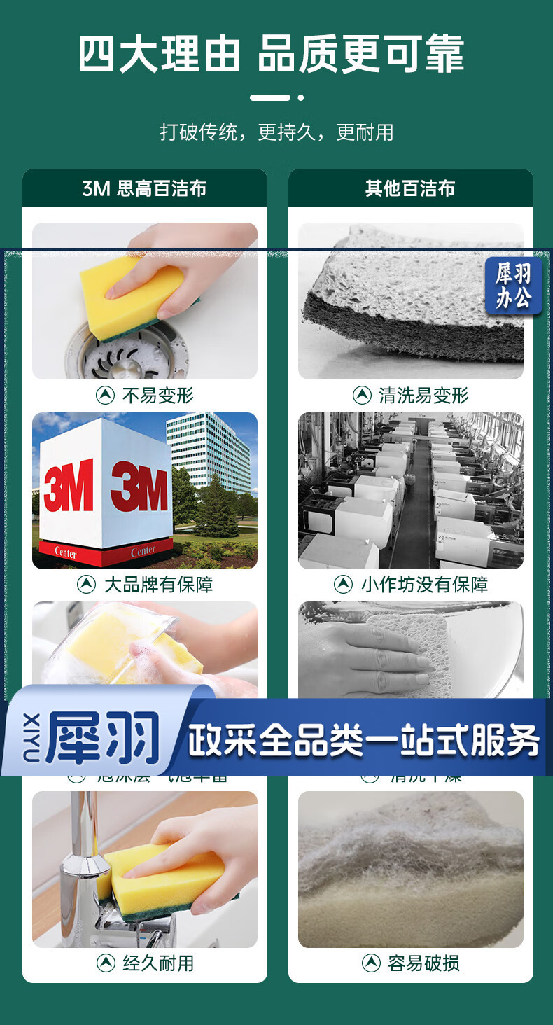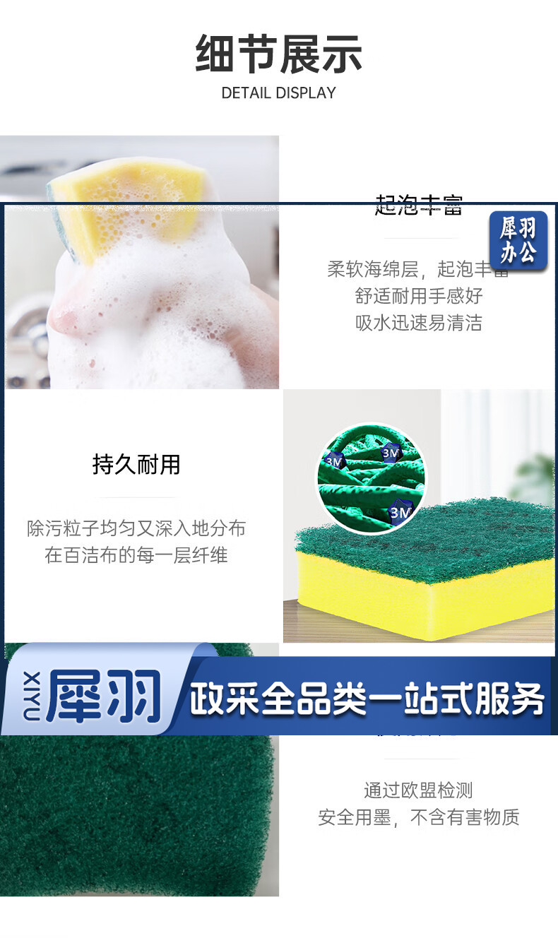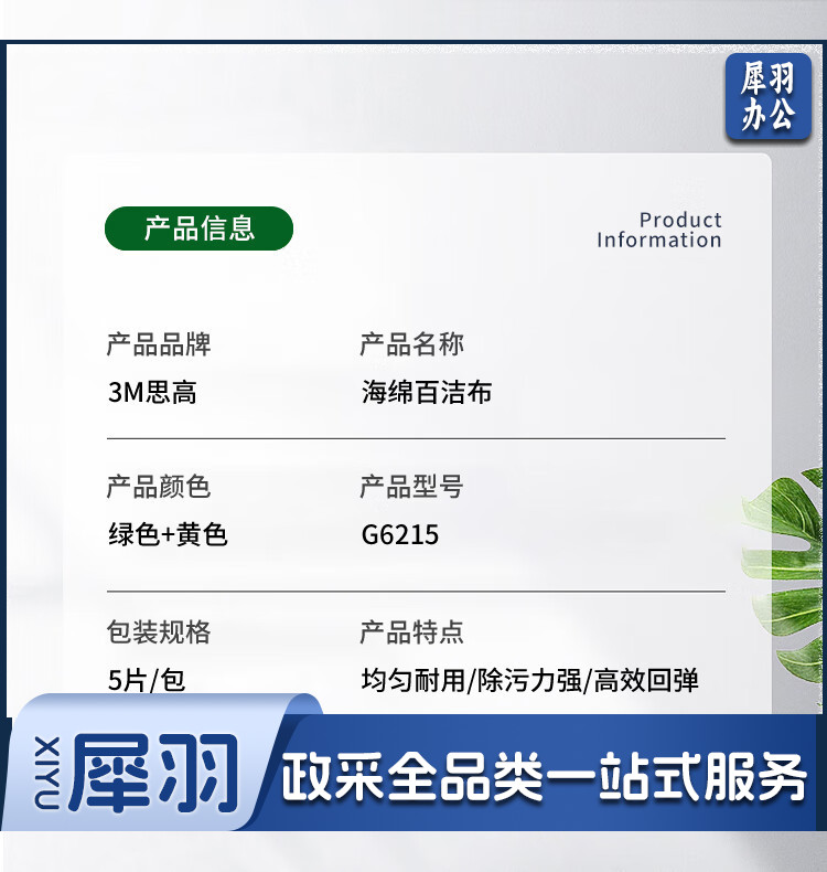 3M思高海绵百洁布洗碗布刷碗擦锅海绵擦 G6215高效厨具清洁耐用去油污 绿黄色 5片装