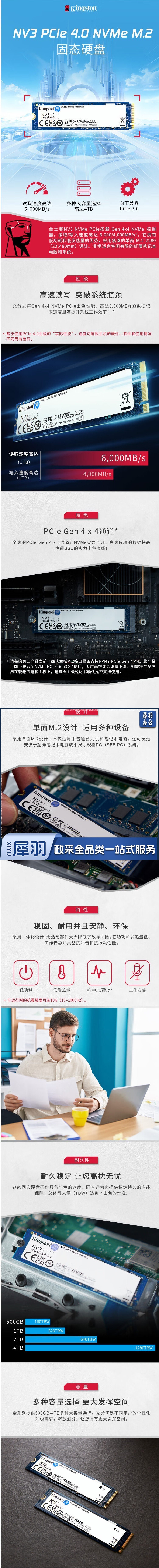 金士顿(Kingston) 1TB SSD固态硬盘 M.2接口(NVMe协议) NV3系列