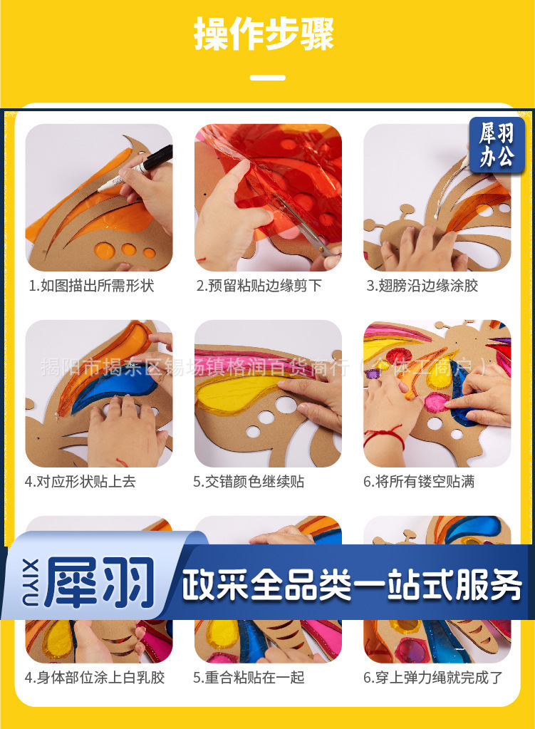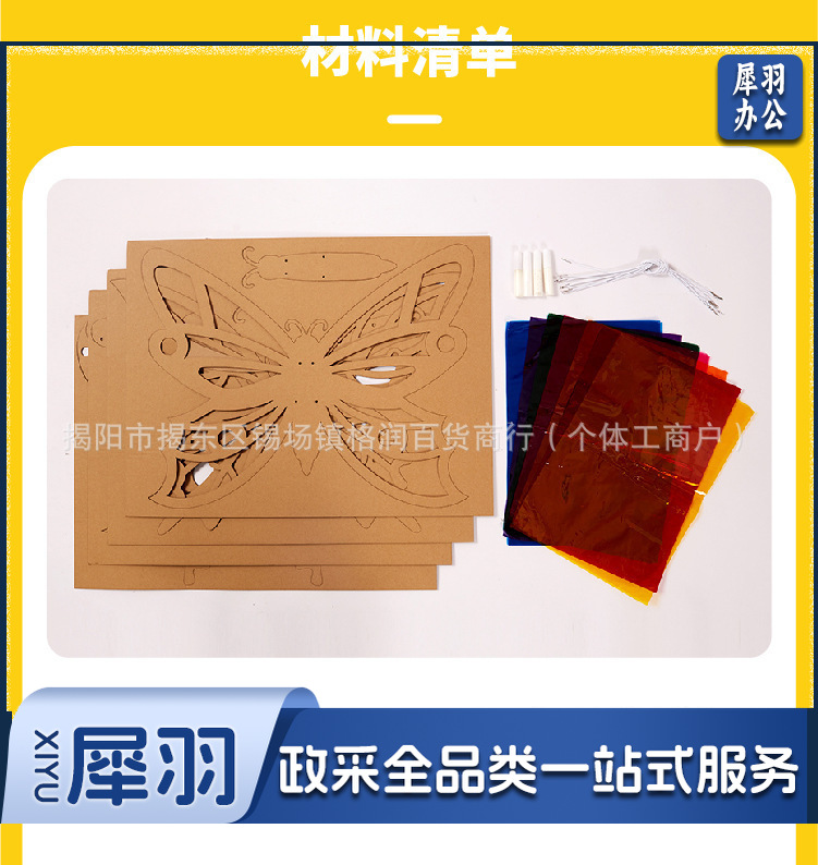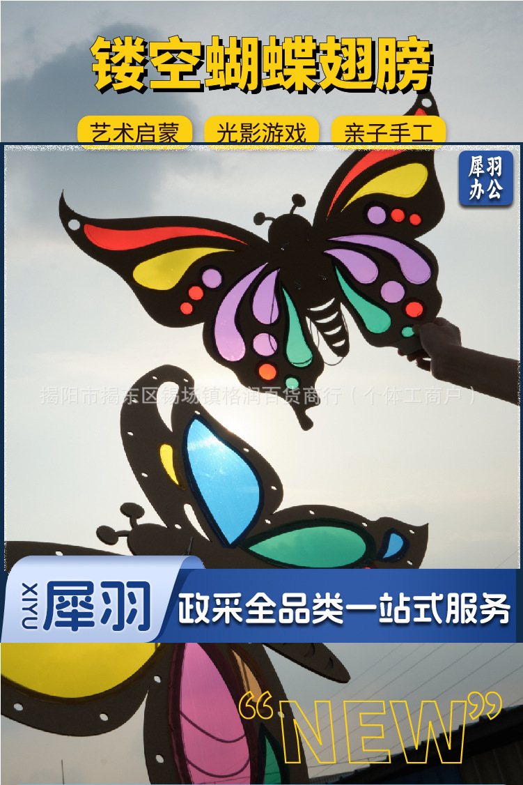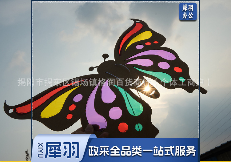 diy光影蝴蝶翅膀材料包儿童彩色玻璃纸手工透明膜七彩透光塑料片(大号蝴蝶翅膀(主图款 配材料包)1套