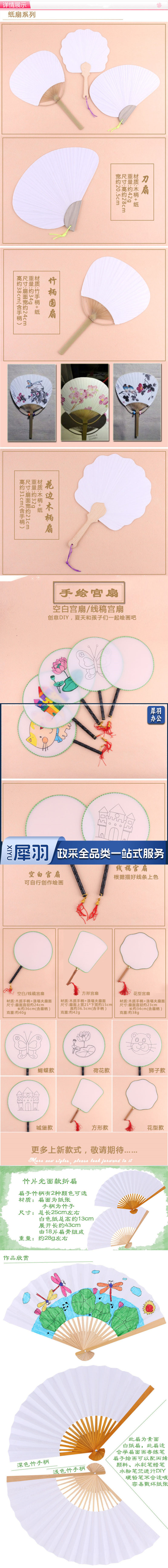 多形状空白纸扇 折扇白色彩色扇子创意diy手工制作材料纸扇儿童绘画涂色100把/包(形状随机)
