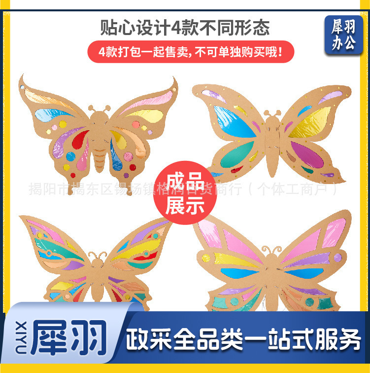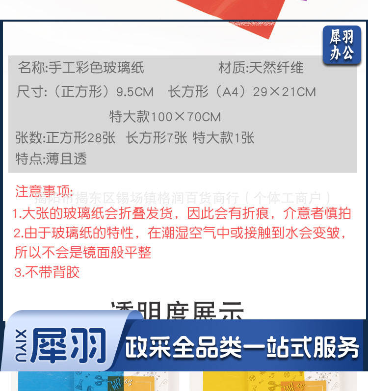 diy光影蝴蝶翅膀材料包儿童彩色玻璃纸手工透明膜七彩透光塑料片(特大玻璃纸7彩色各1张 7张装70*100cm)