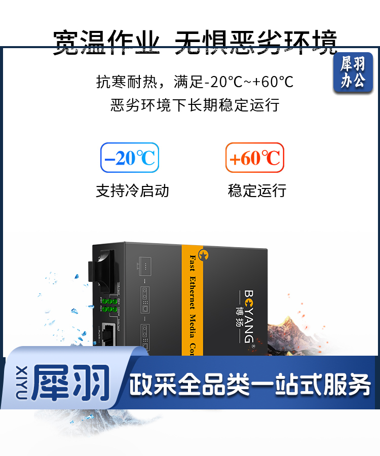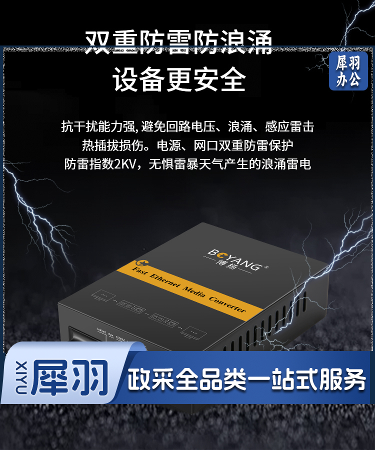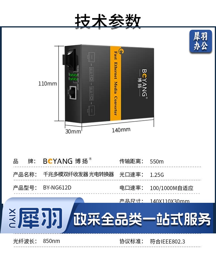 博扬(BOYANG)BY-NG612D 千兆双纤多模光纤收发器 光电转换器 防雷SC接口 550m内置电源 一台
