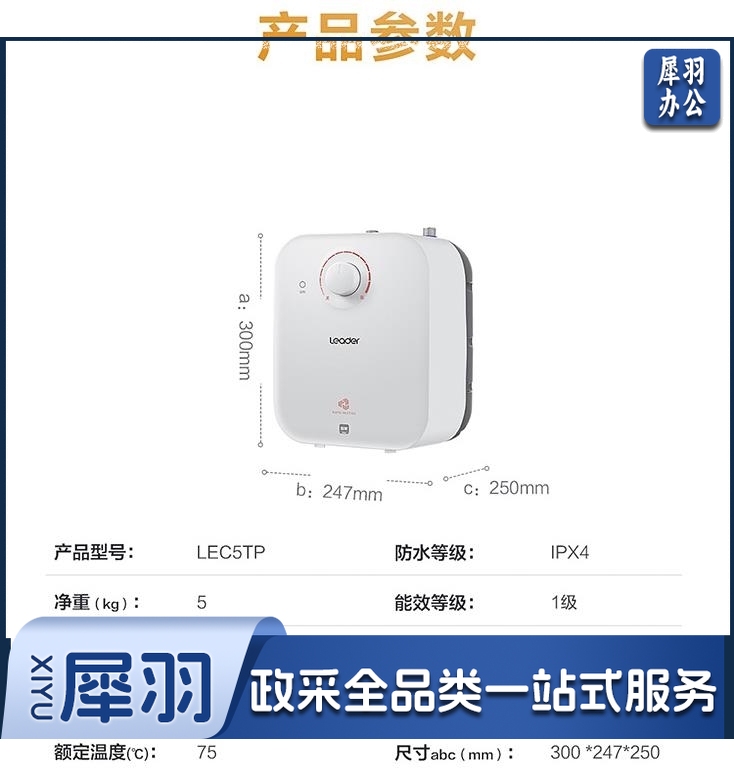 统帅(Leader)海尔出品 5升迷你上出水小厨宝1750W速热 小尺寸大水量连续出水21L LEC5TP