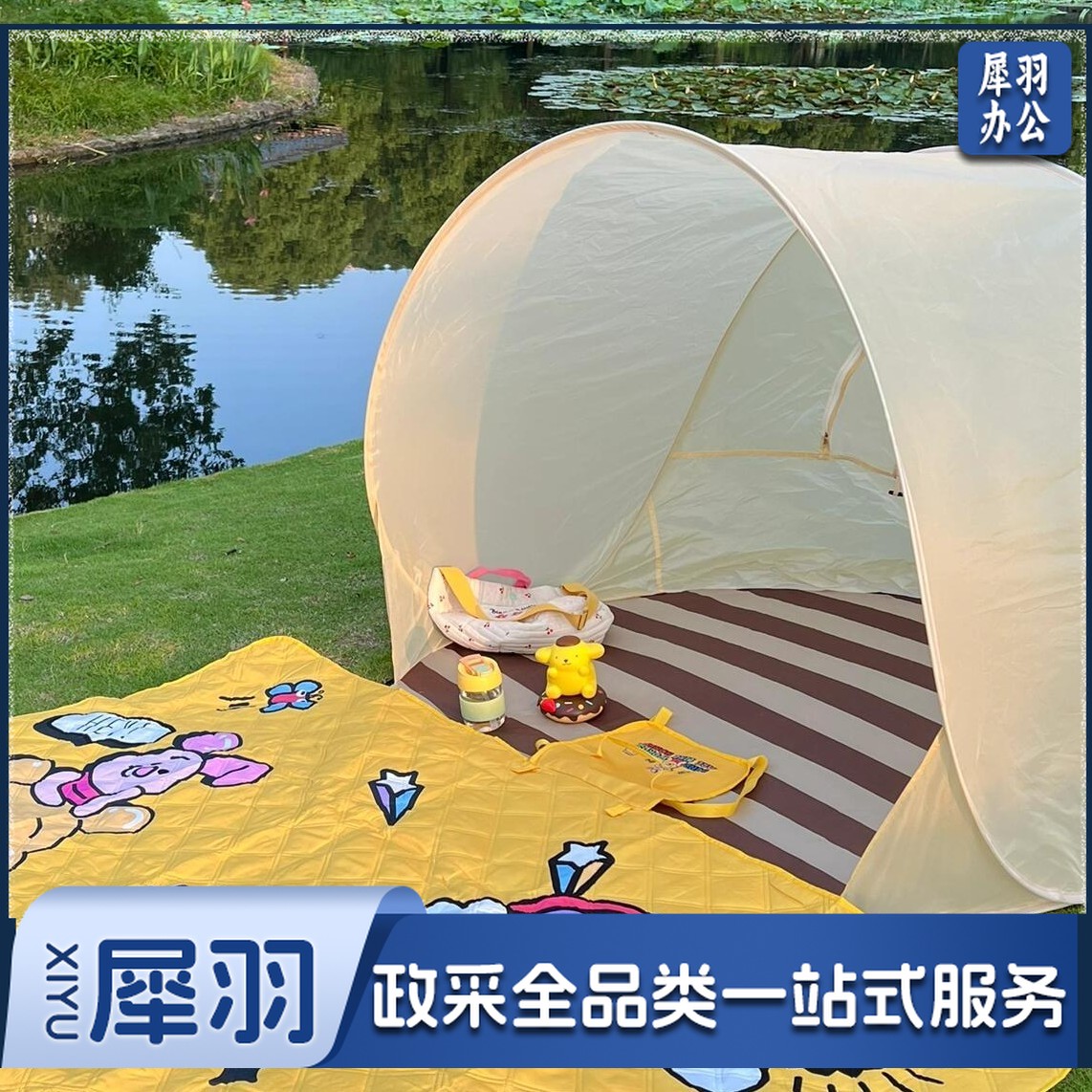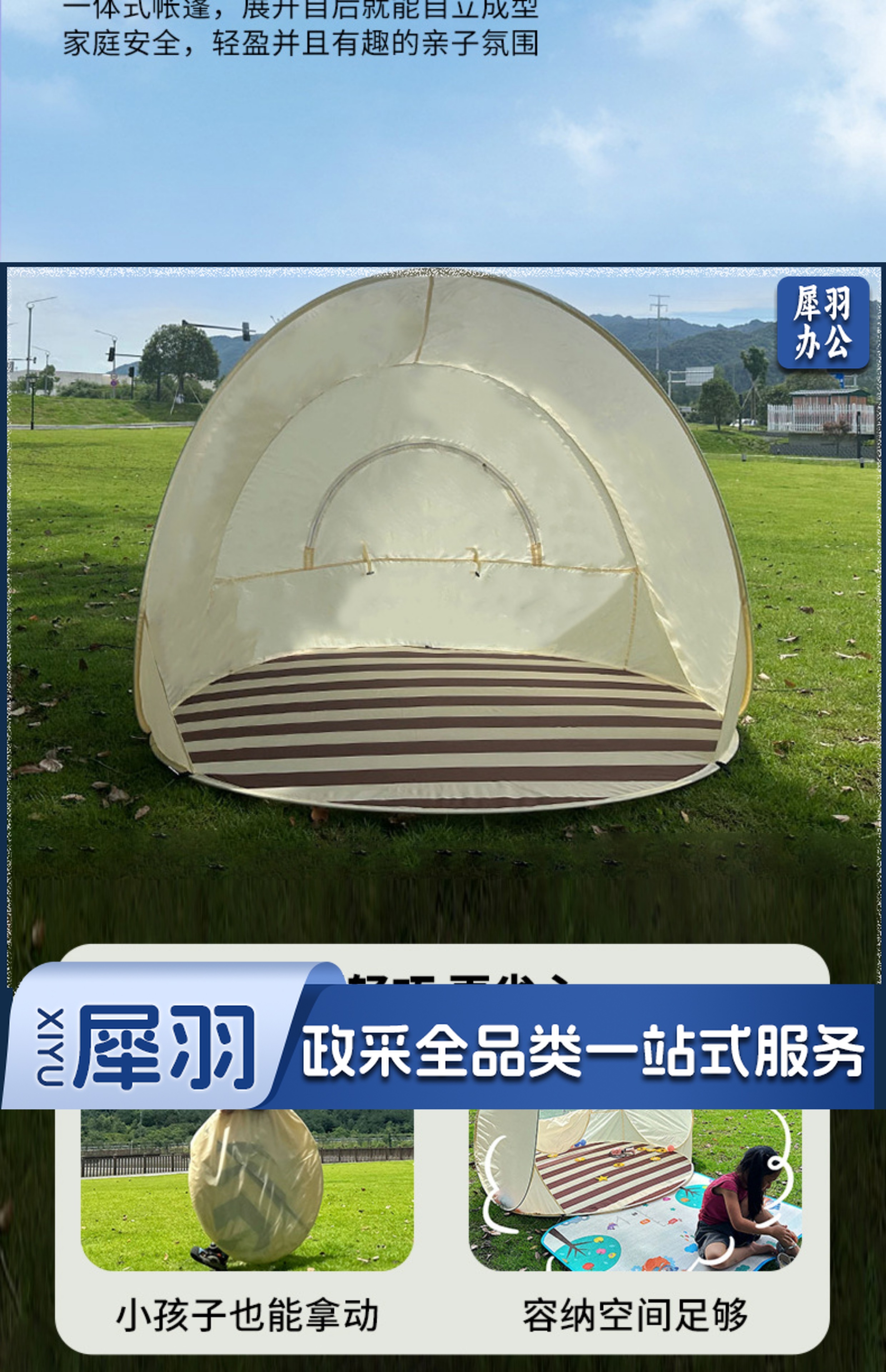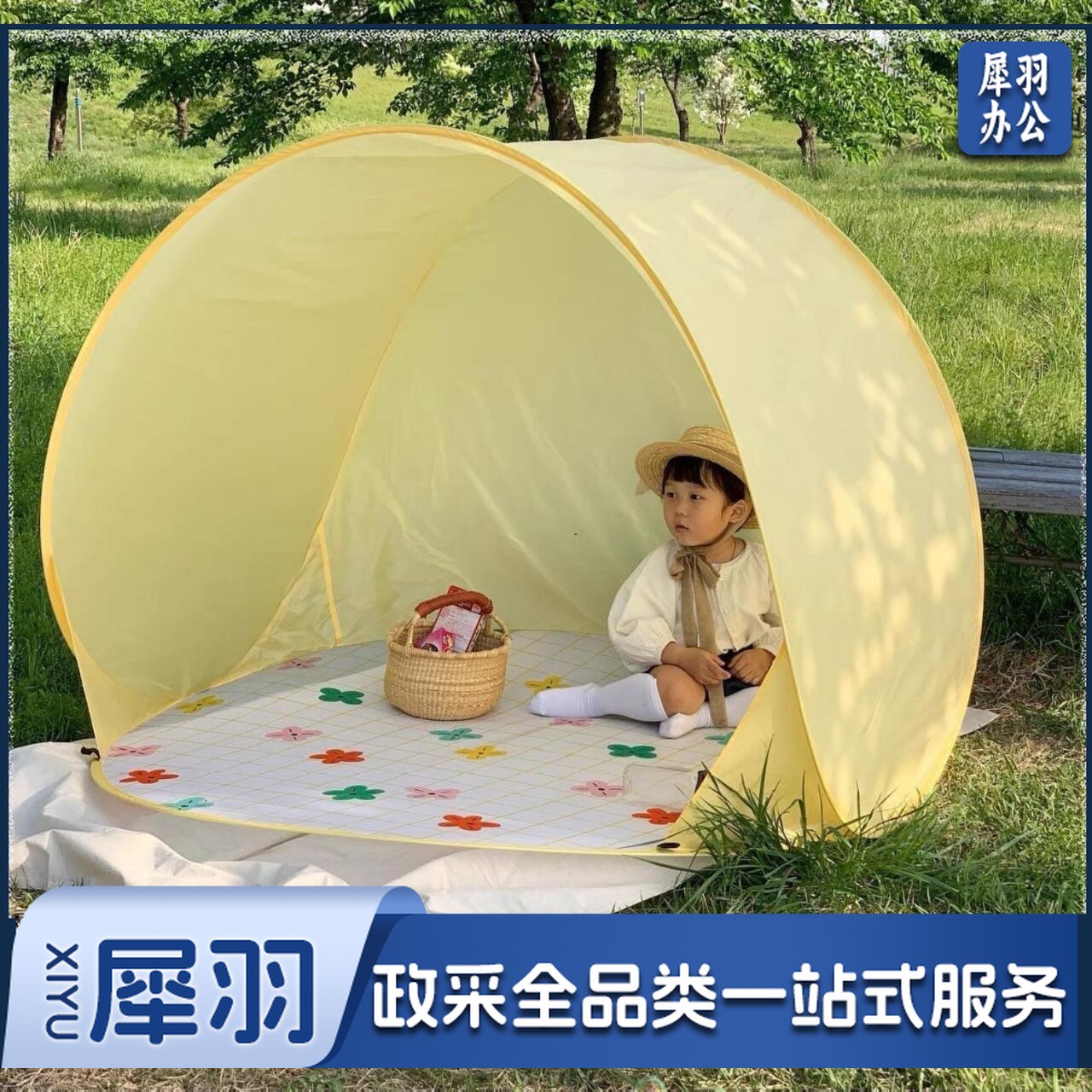屋露营帐篷装备沙滩户外游戏一键春游折叠开合儿童防雨便携式防晒(2*3米铝膜黄格2.5mm厚)