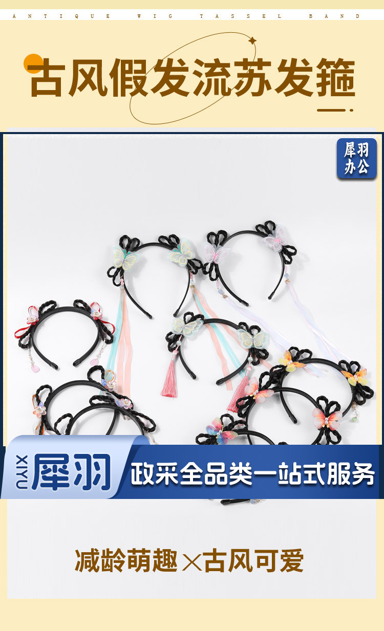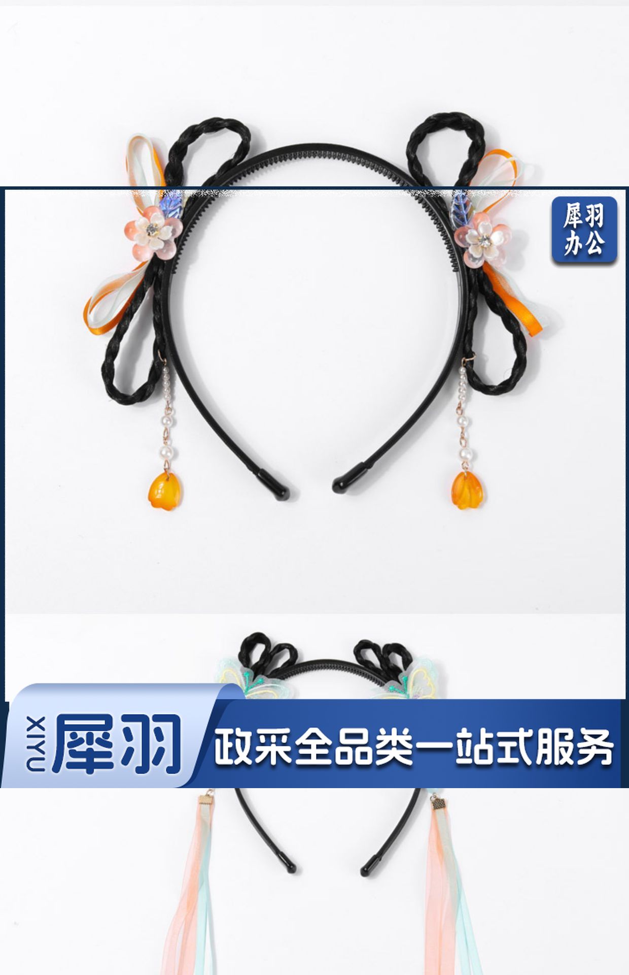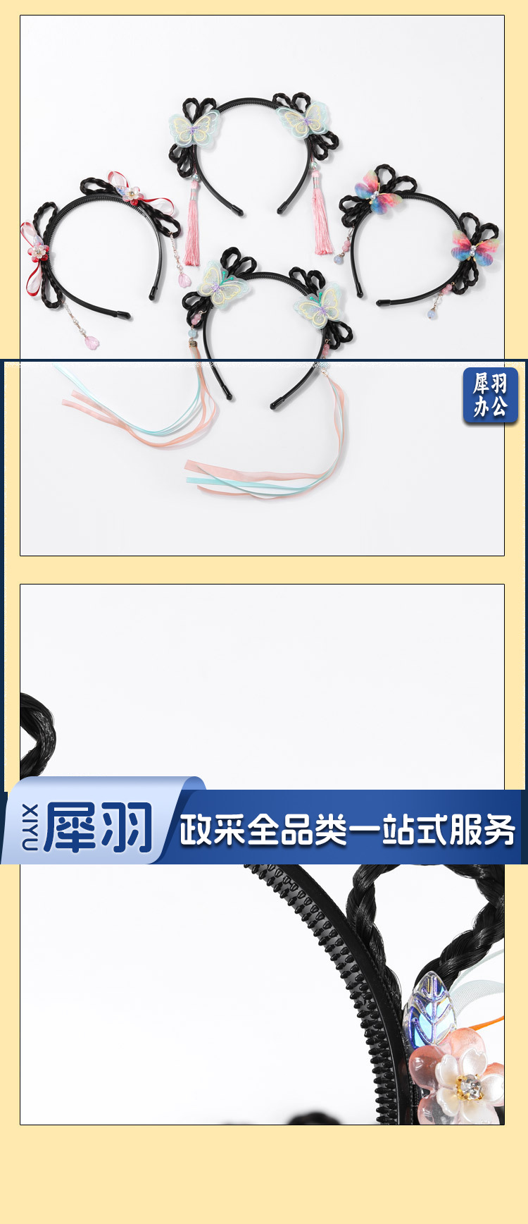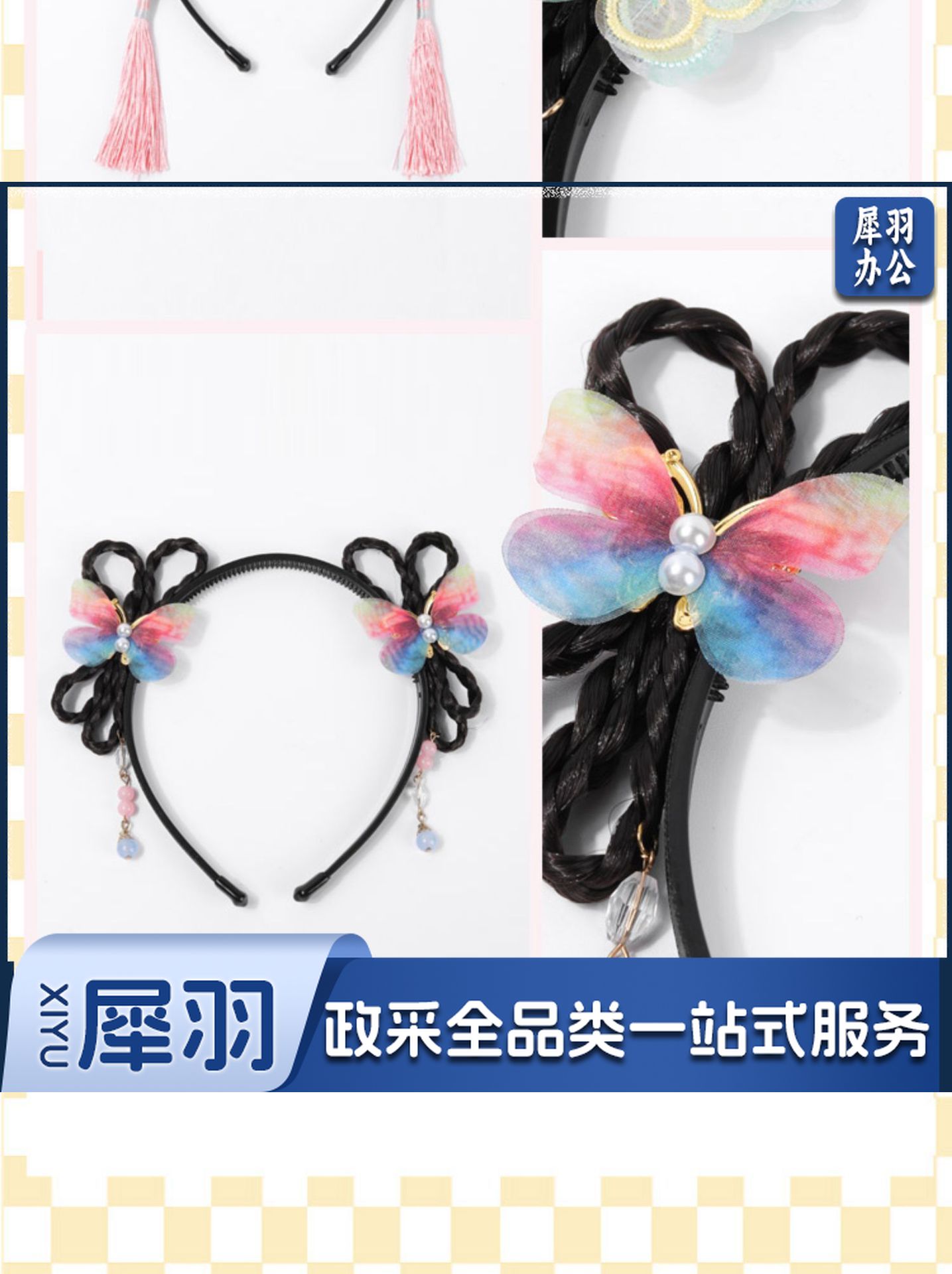 古风假发辫蝴蝶结发箍女童流苏发饰汉服头箍儿童古装拍照头饰配饰