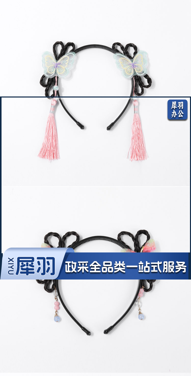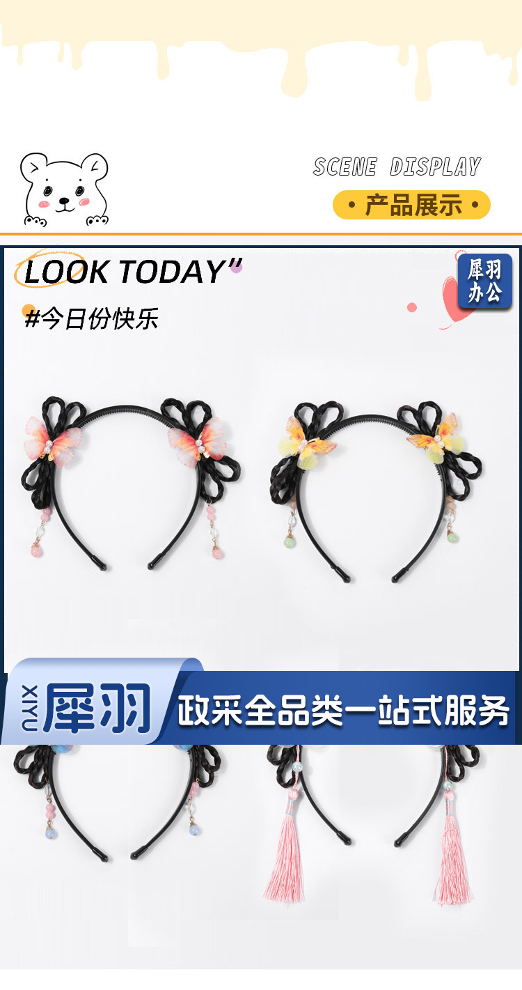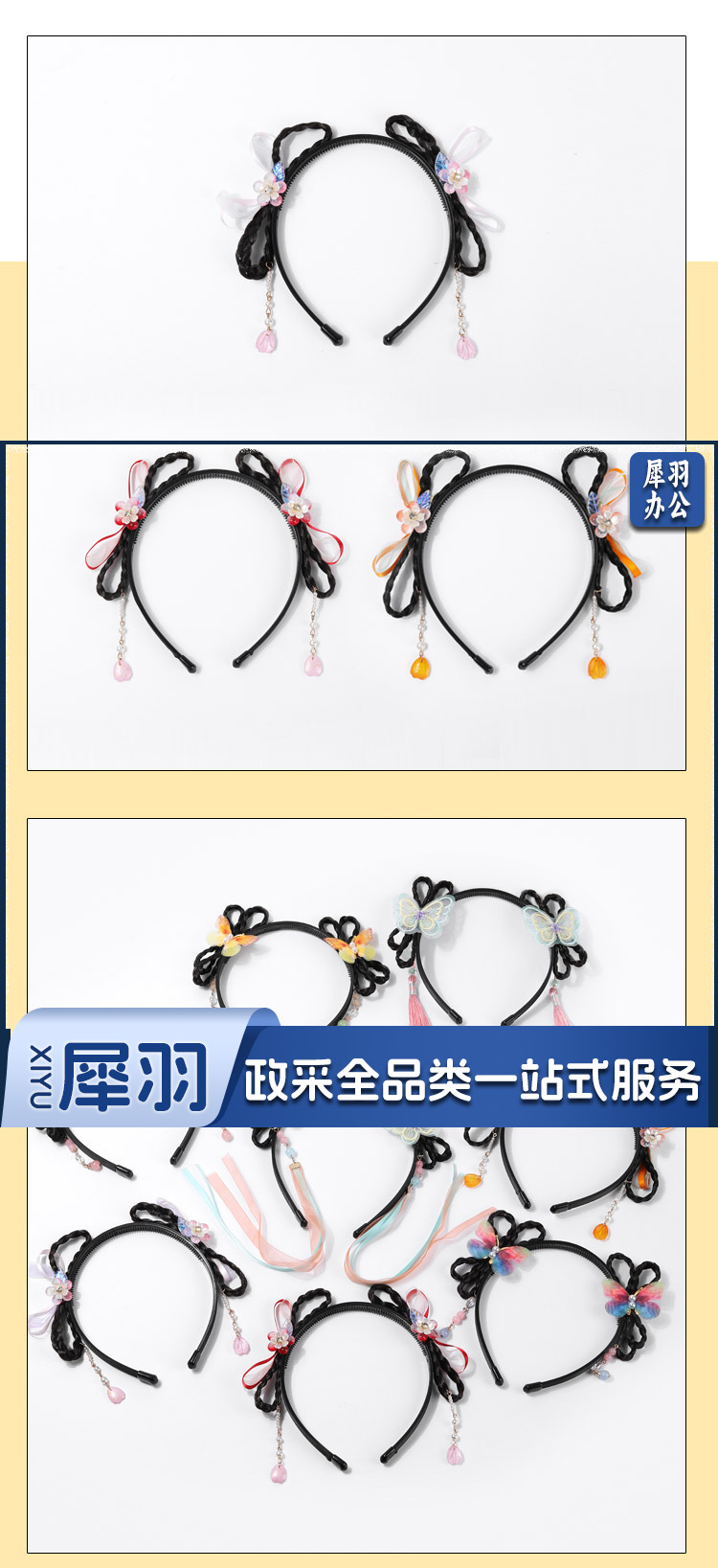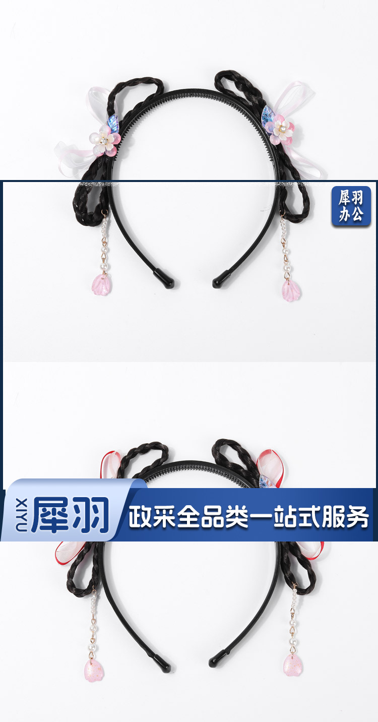 古风假发辫蝴蝶结发箍女童流苏发饰汉服头箍儿童古装拍照头饰配饰