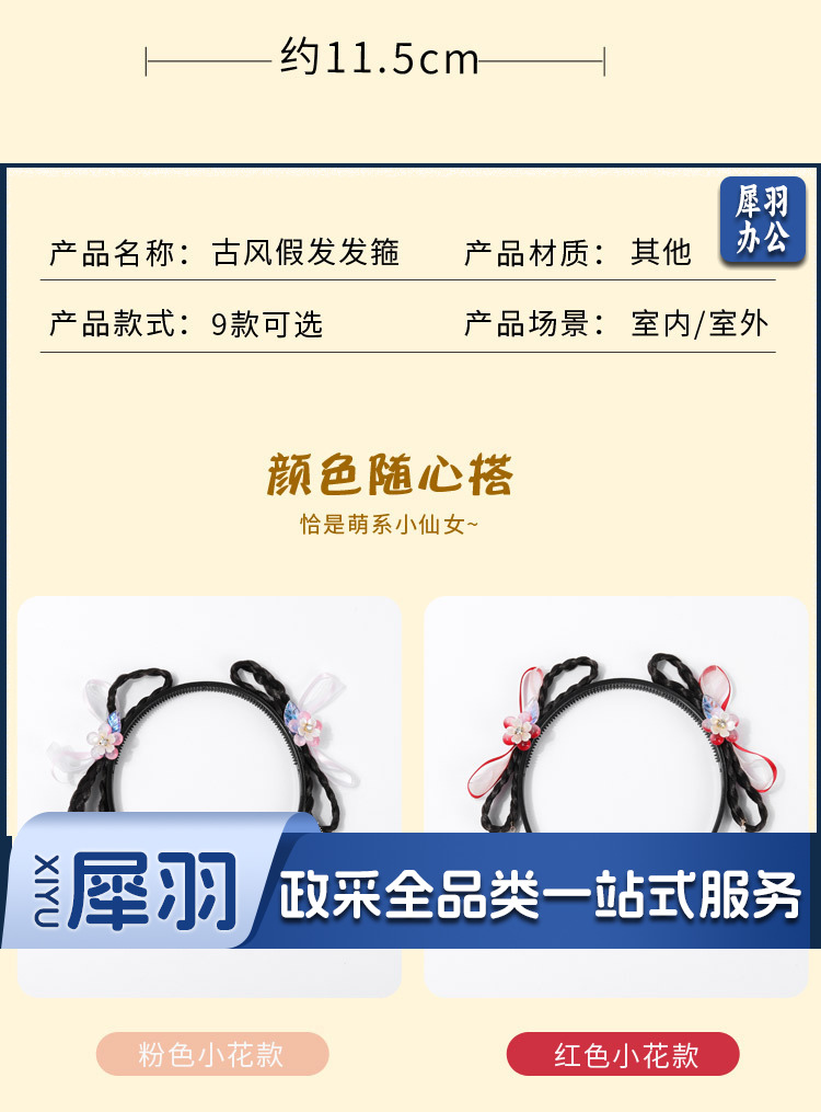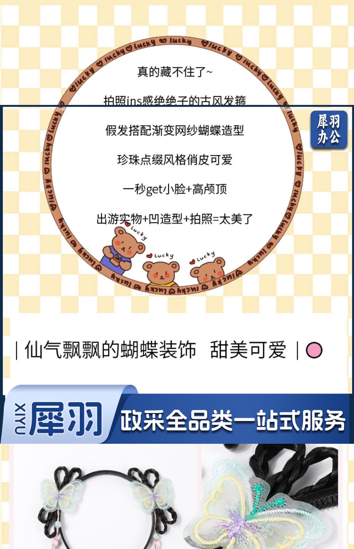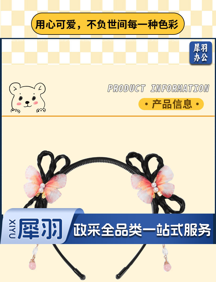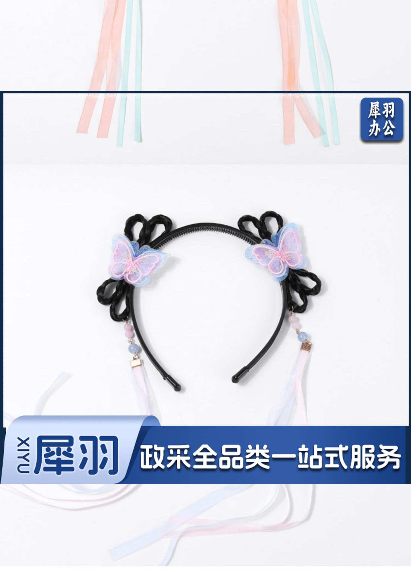 古风假发辫蝴蝶结发箍女童流苏发饰汉服头箍儿童古装拍照头饰配饰