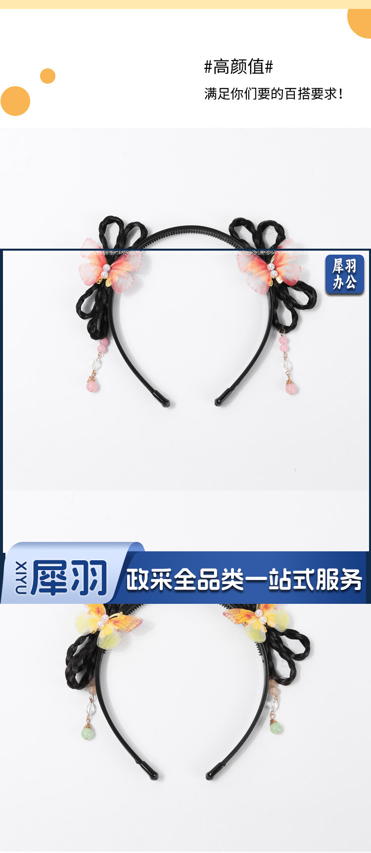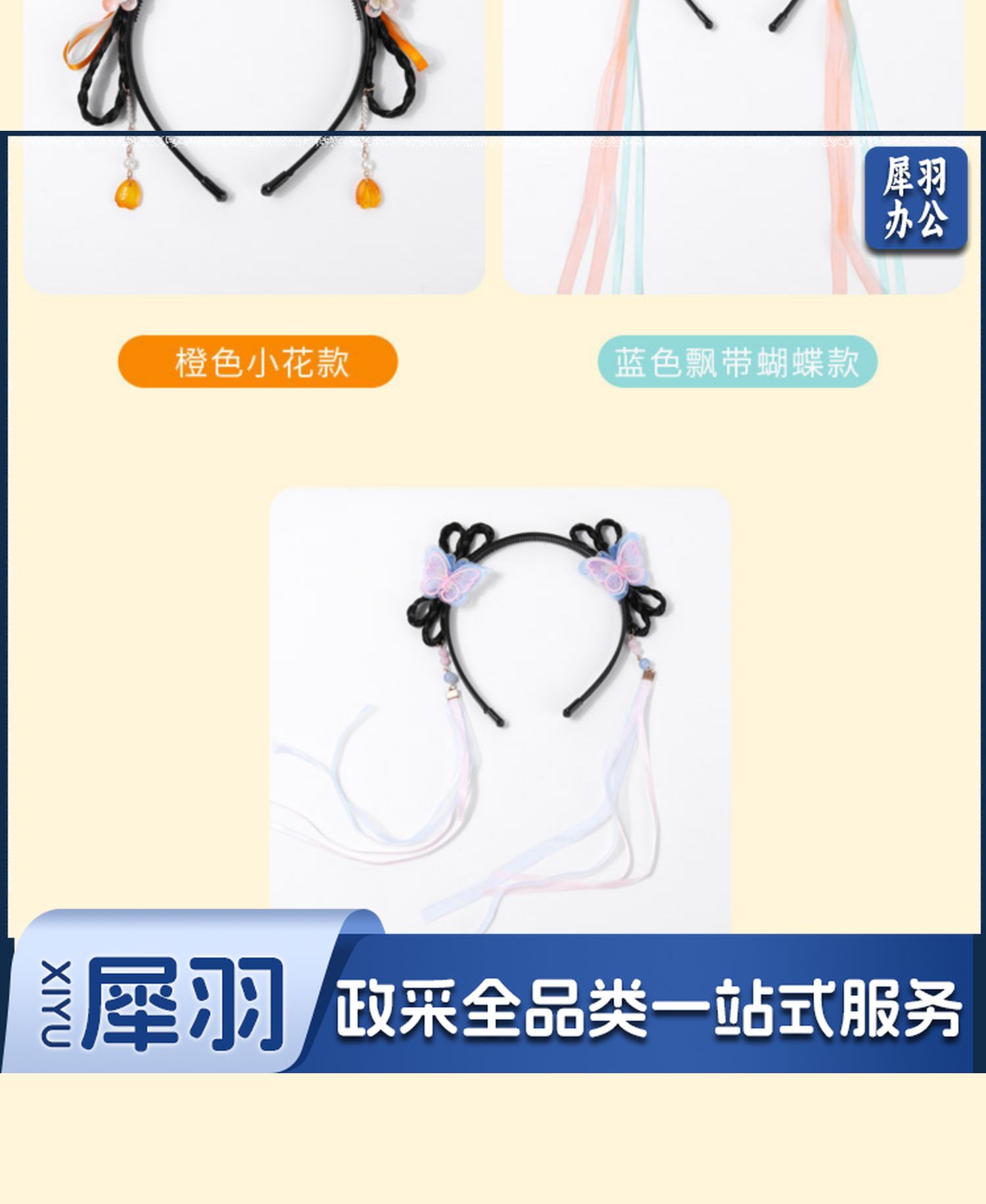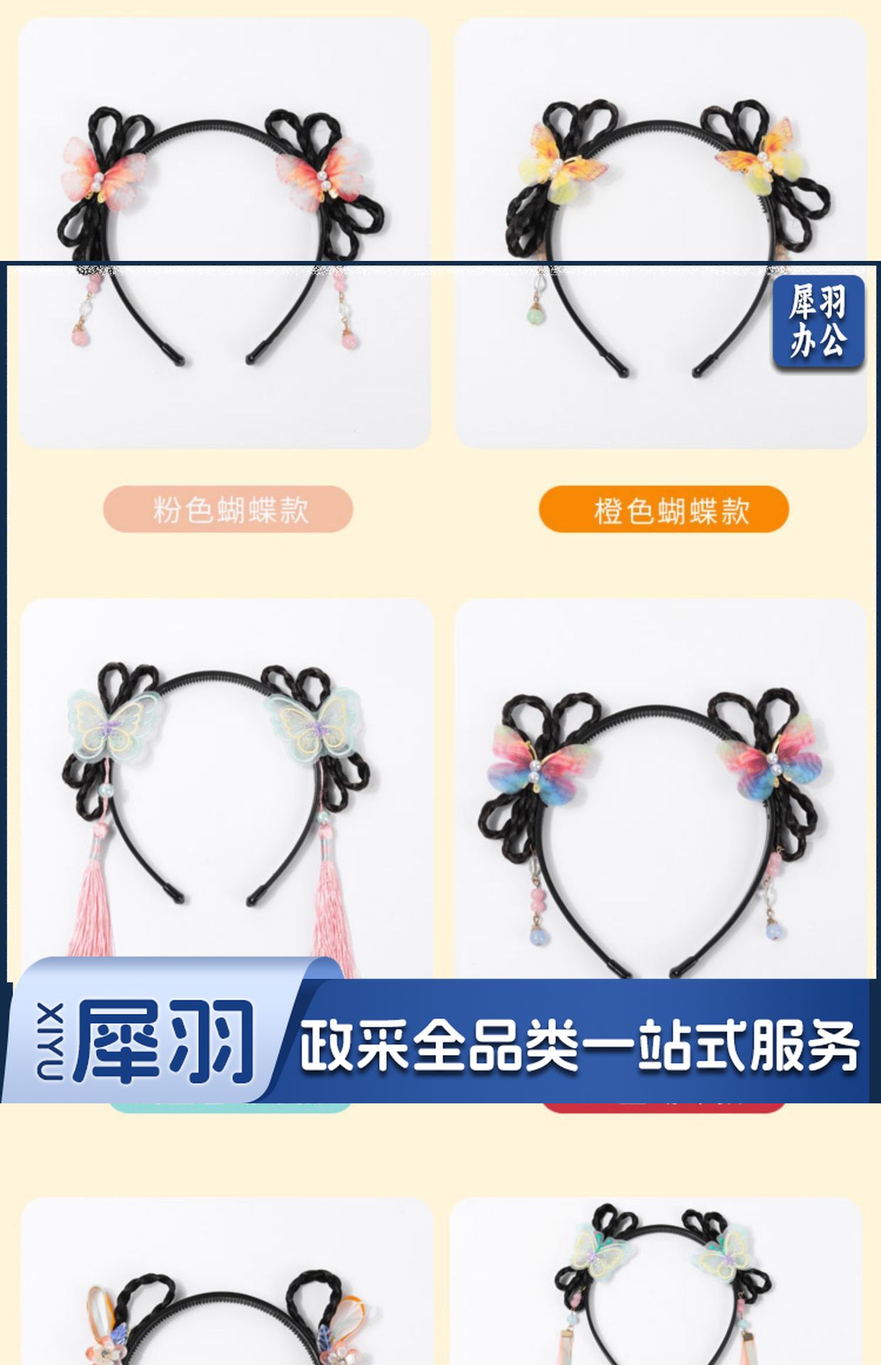 古风假发辫蝴蝶结发箍女童流苏发饰汉服头箍儿童古装拍照头饰配饰(古风汉服橙色蝴蝶发箍)