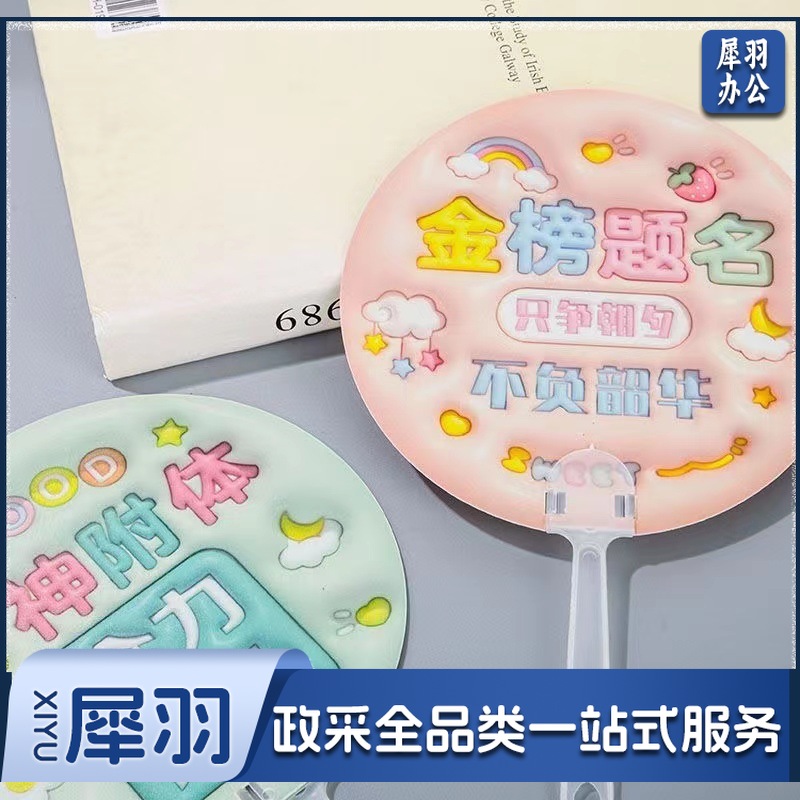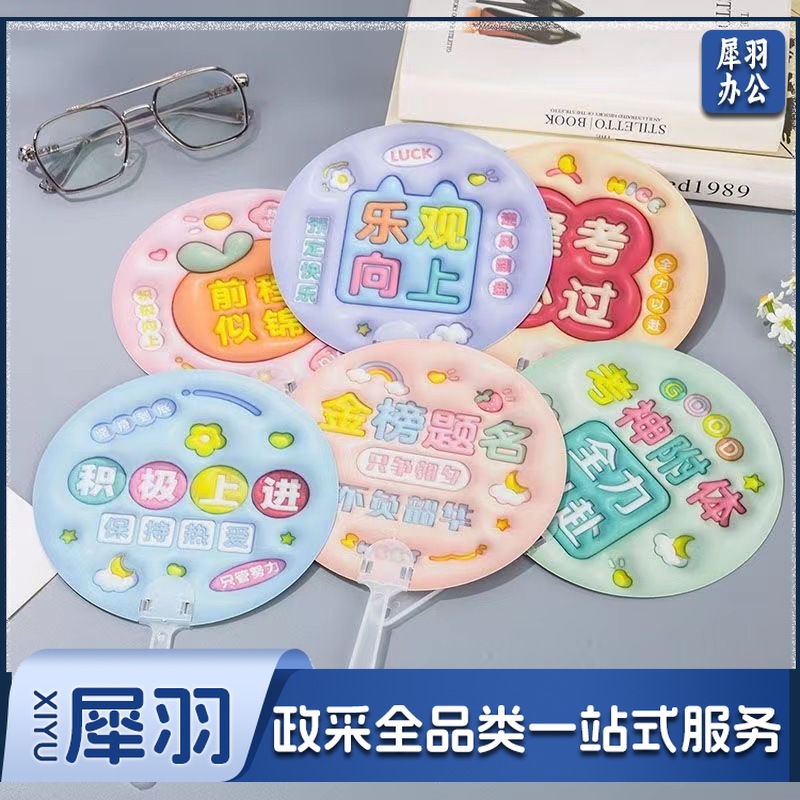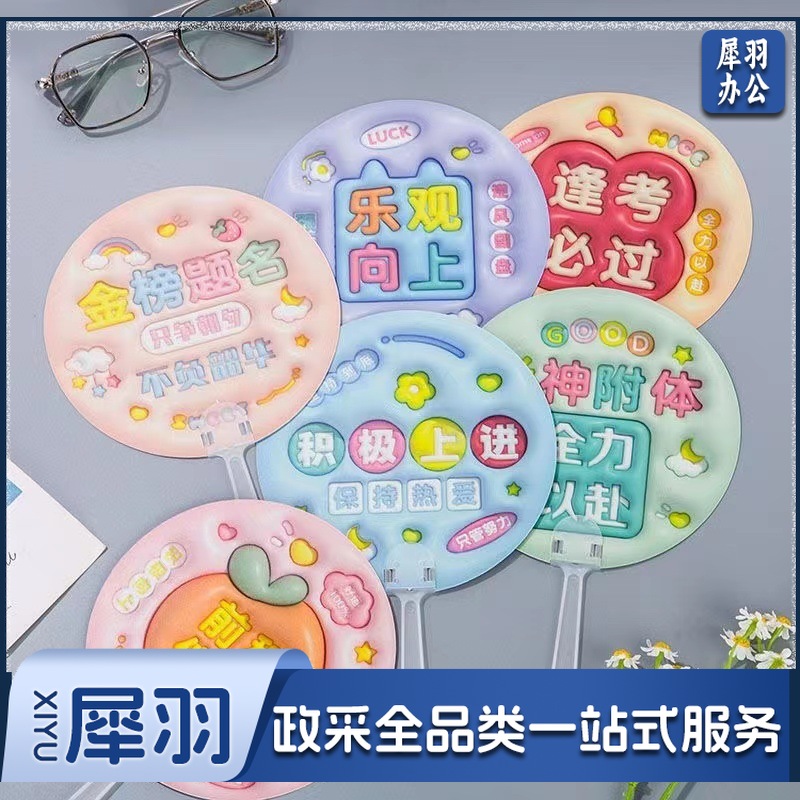 3D立体画励志文字扇子创意膨胀小圆扇学生金榜题名毕业奖品手持扇(款式任选)