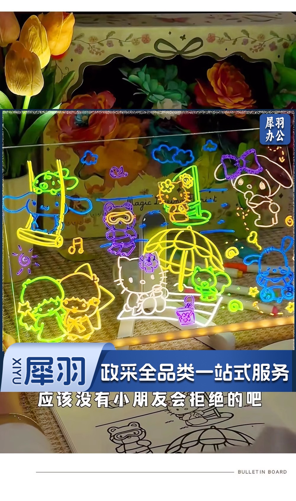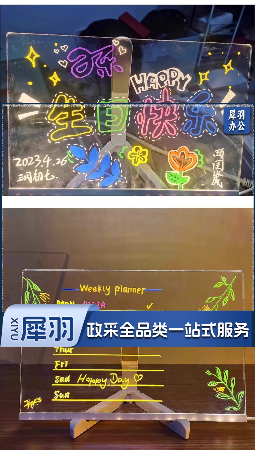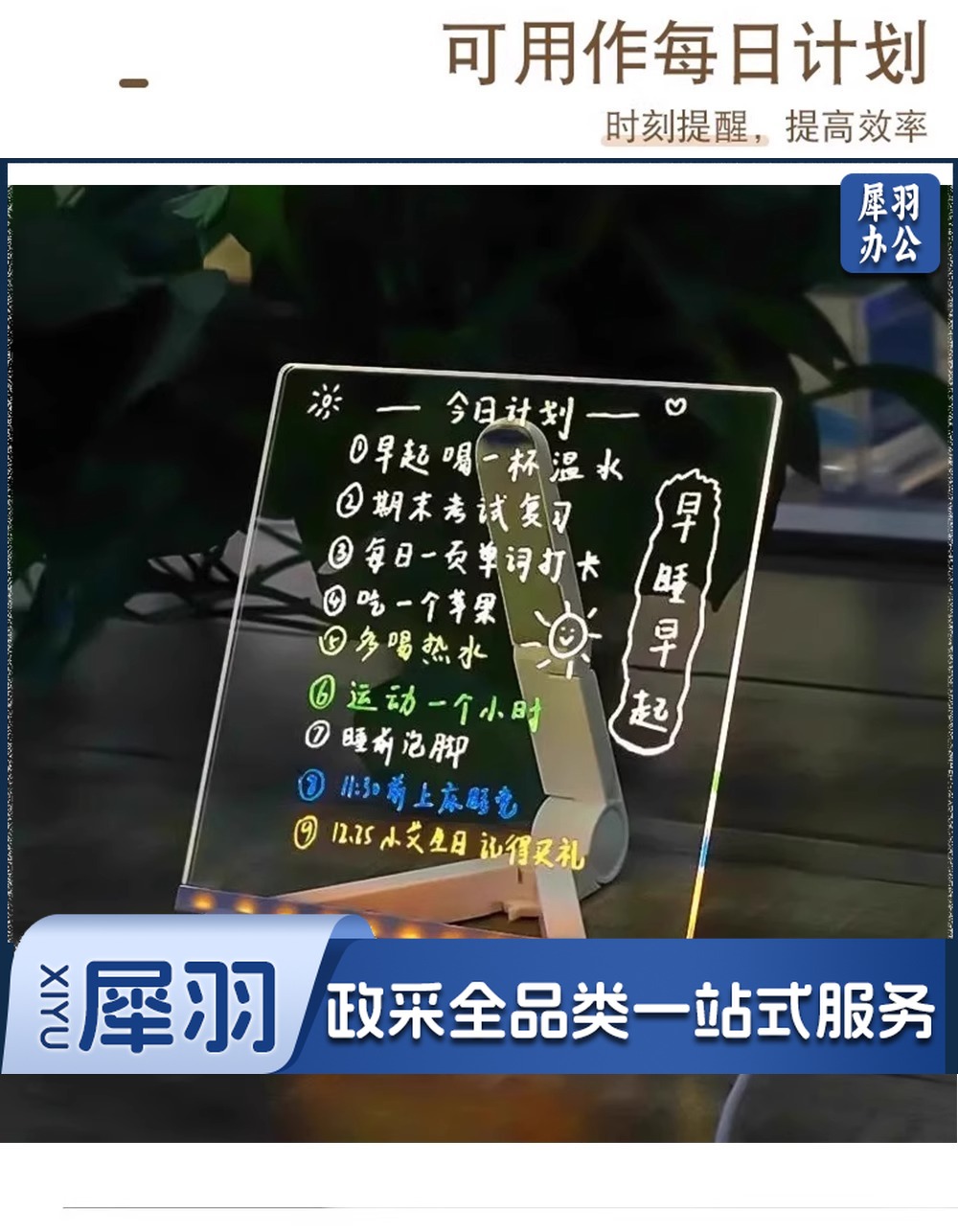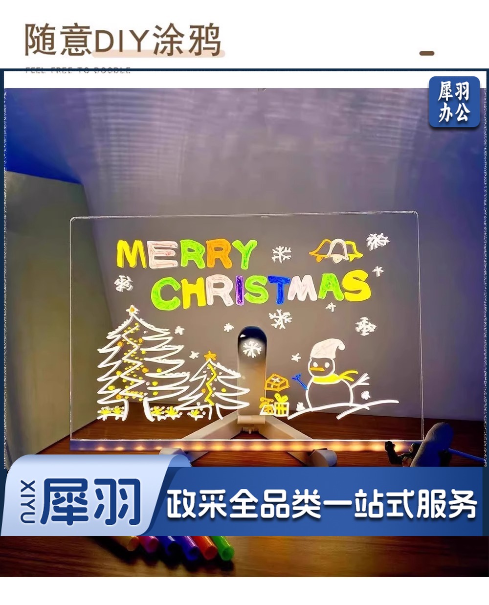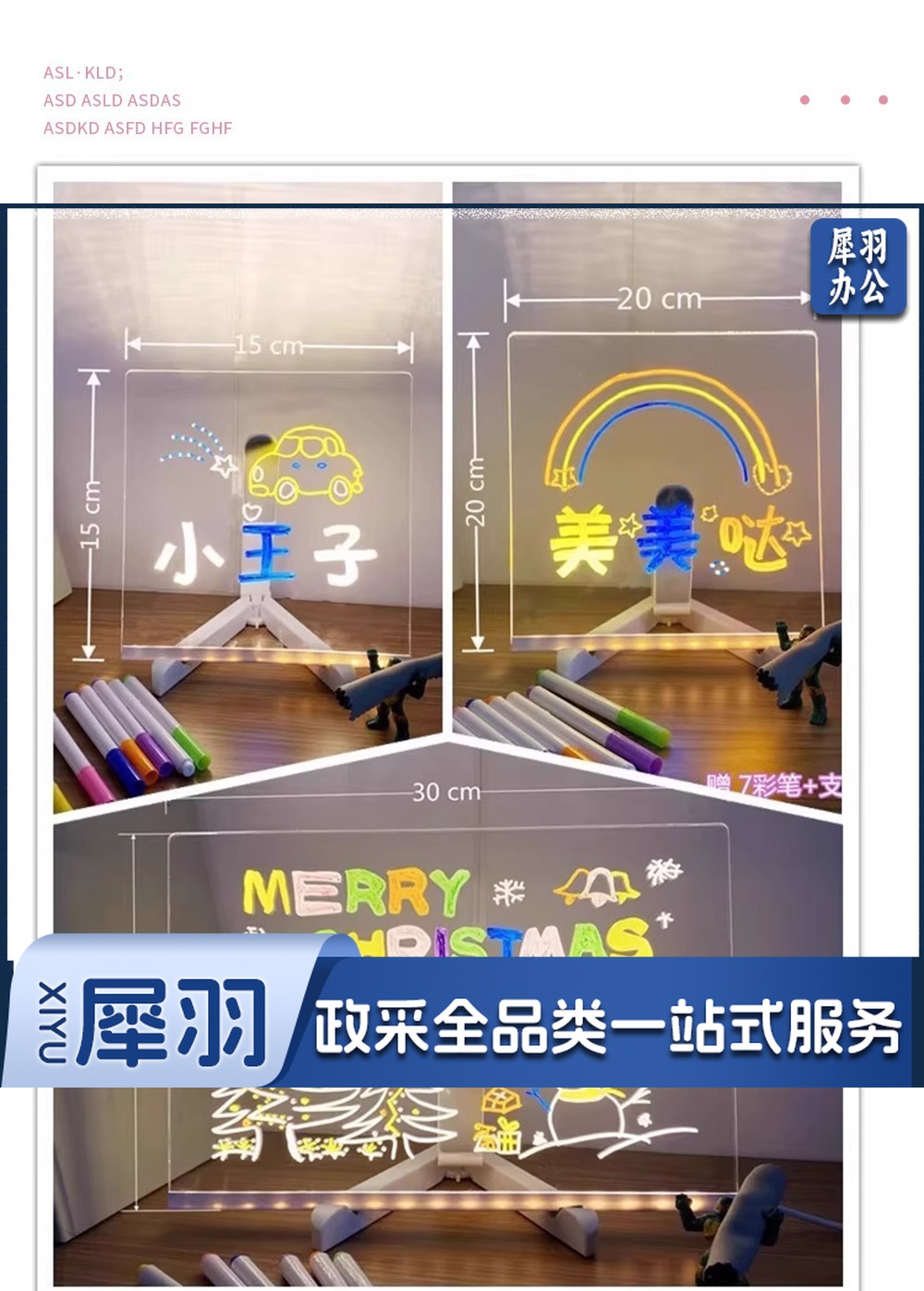 儿童发光画板ubs充电透明亚克力手写板男孩女孩DIY益智玩具留言板(大号 30x20CM【全套工具】+随机一个素描本)