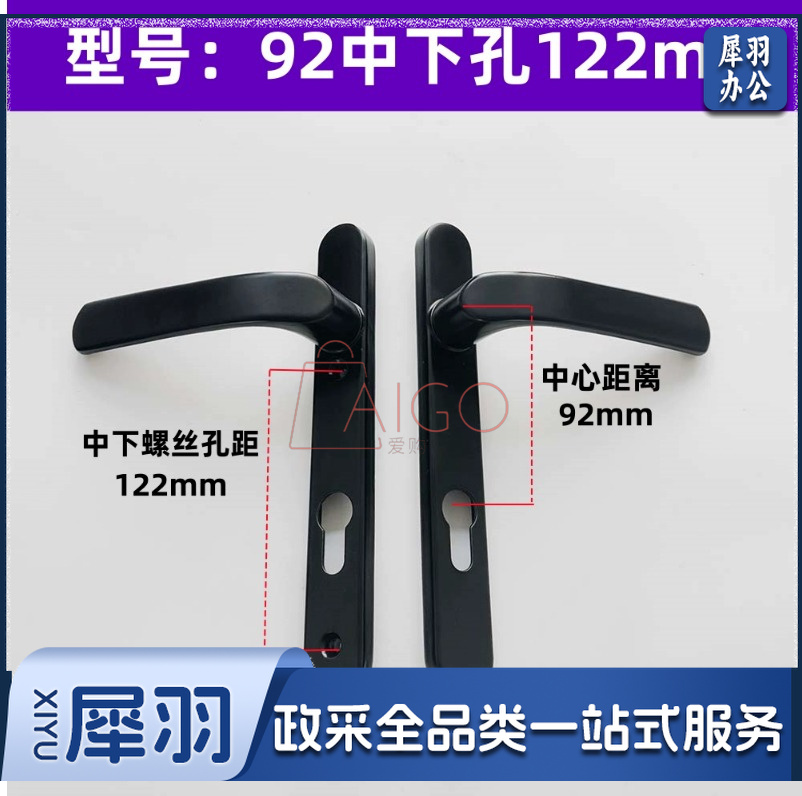 断桥铝锁面板门把手92中下孔122mm白平开门铝合金门大门门窗塑钢锁具移门