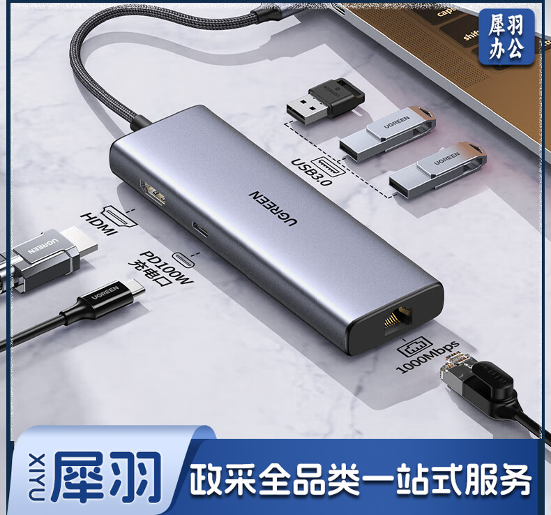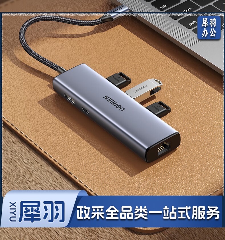 绿联(UGREEN)Type-C扩展坞网口千兆拓展坞USB分线器雷电4转HDMI网线转接器4