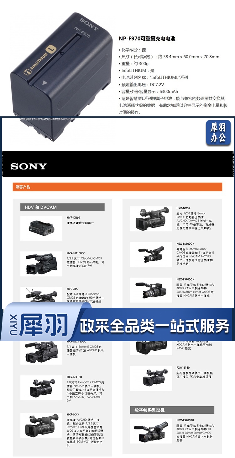 索尼(SONY)原装锂电池NP-F970 索尼专业摄像机专用电池
