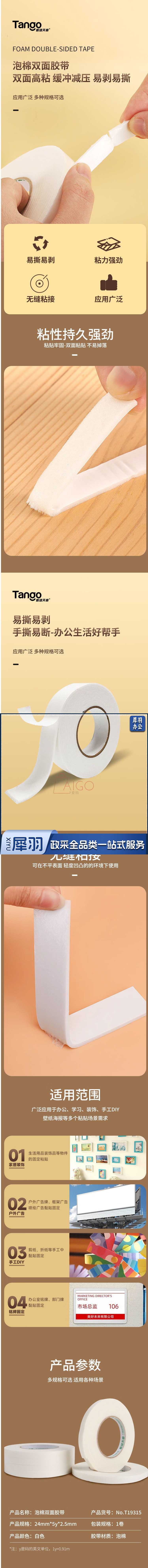 高粘泡棉双面胶带24mm*5y*1卷加厚白色EVA泡沫胶带强力加厚