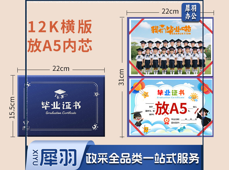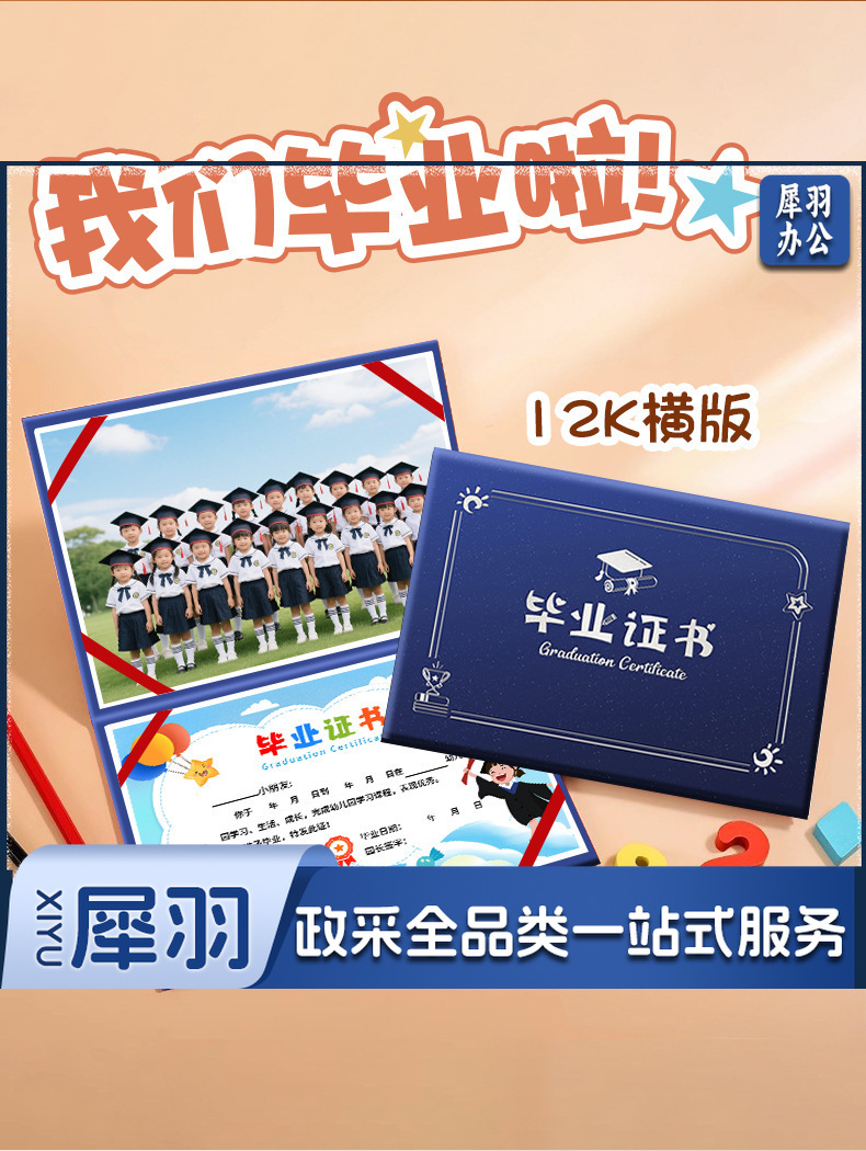 幼儿园毕业证书离园纪念册外壳大班小朋友证书奖状外壳(【16K竖版】蓝色磨砂丨03内页)内页可选