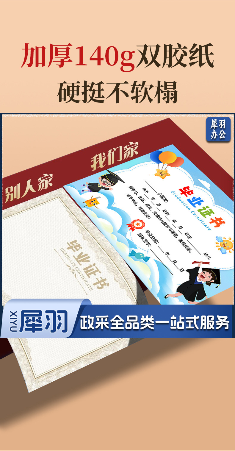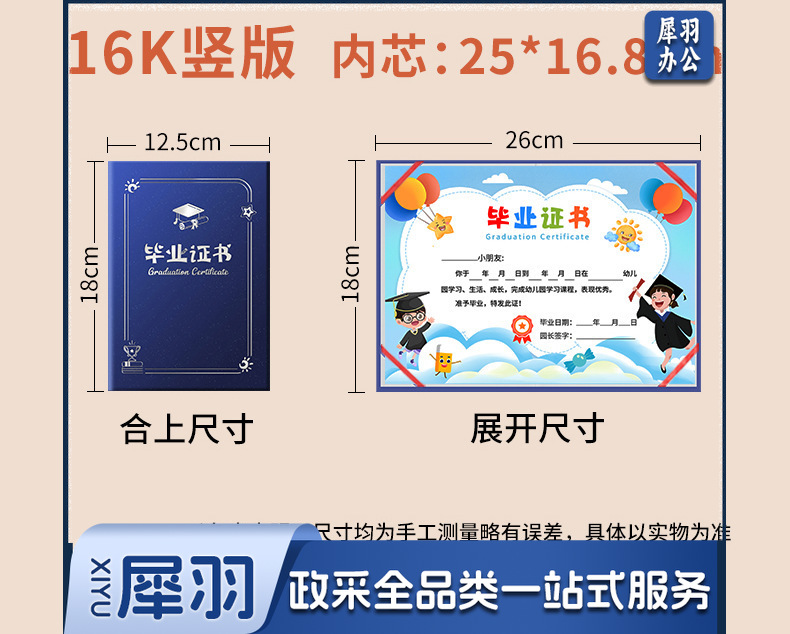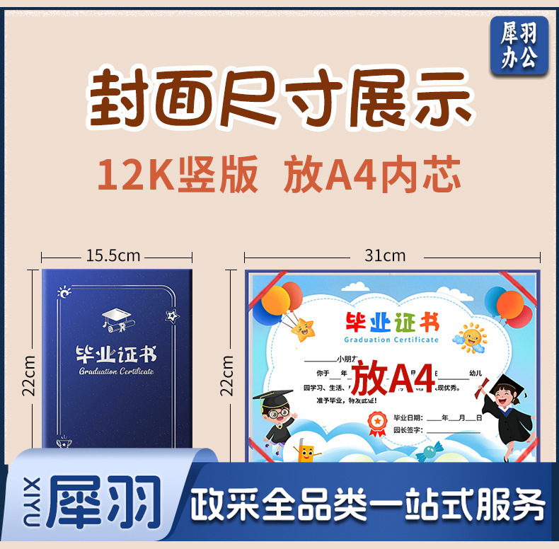 幼儿园毕业证书离园纪念册外壳大班小朋友证书奖状外壳(【16K竖版】