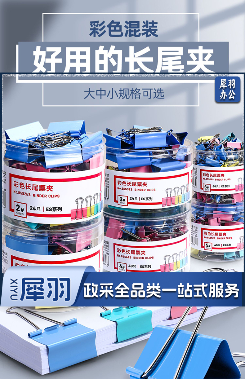 得力8553ES长尾夹彩色燕尾夹凤尾夹32mm 3#
