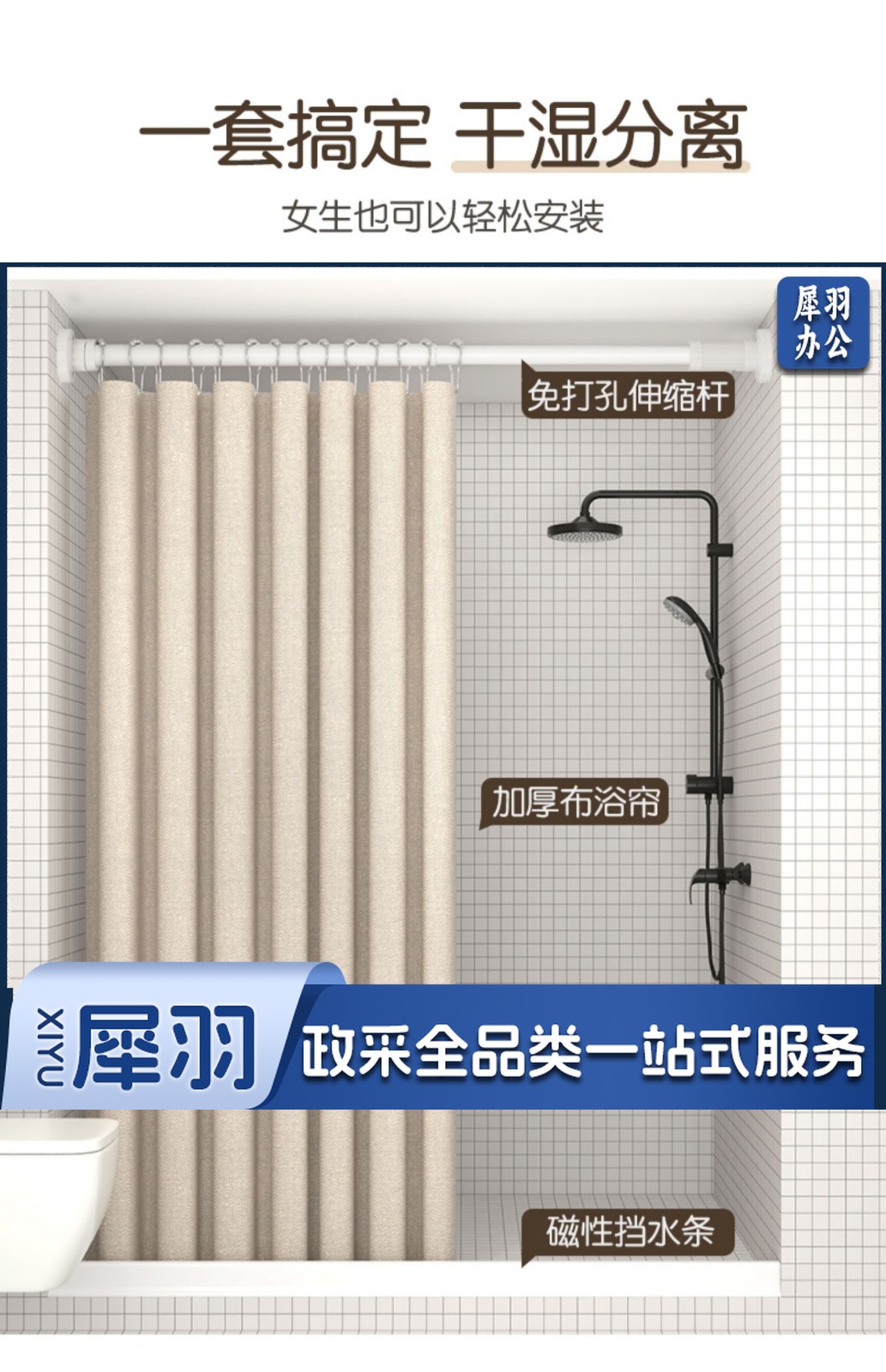 浴室浴帘磁吸套装免打孔卫生间洗澡防水布门帘窗帘隔断挡水挂帘子