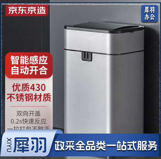 不锈钢智能感应垃圾桶 卫生间带盖厕所厨房客厅办公室垃圾筒 15L