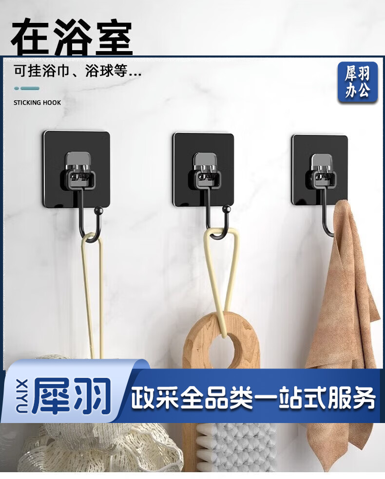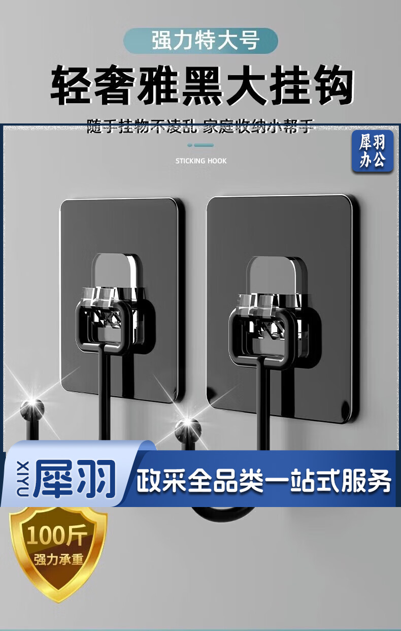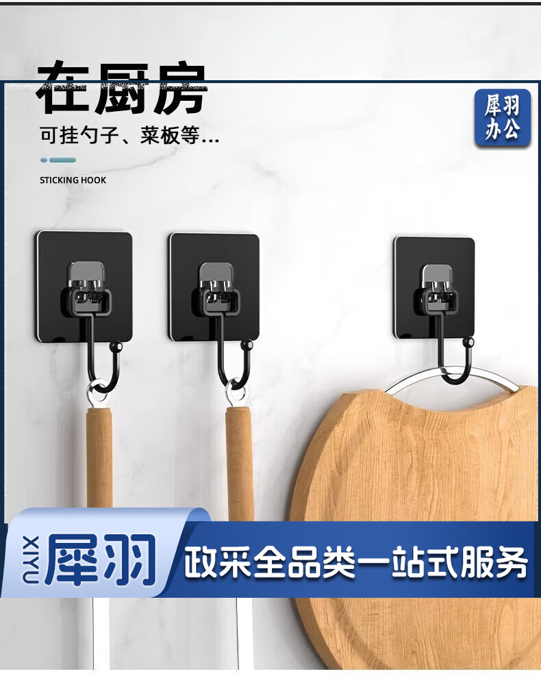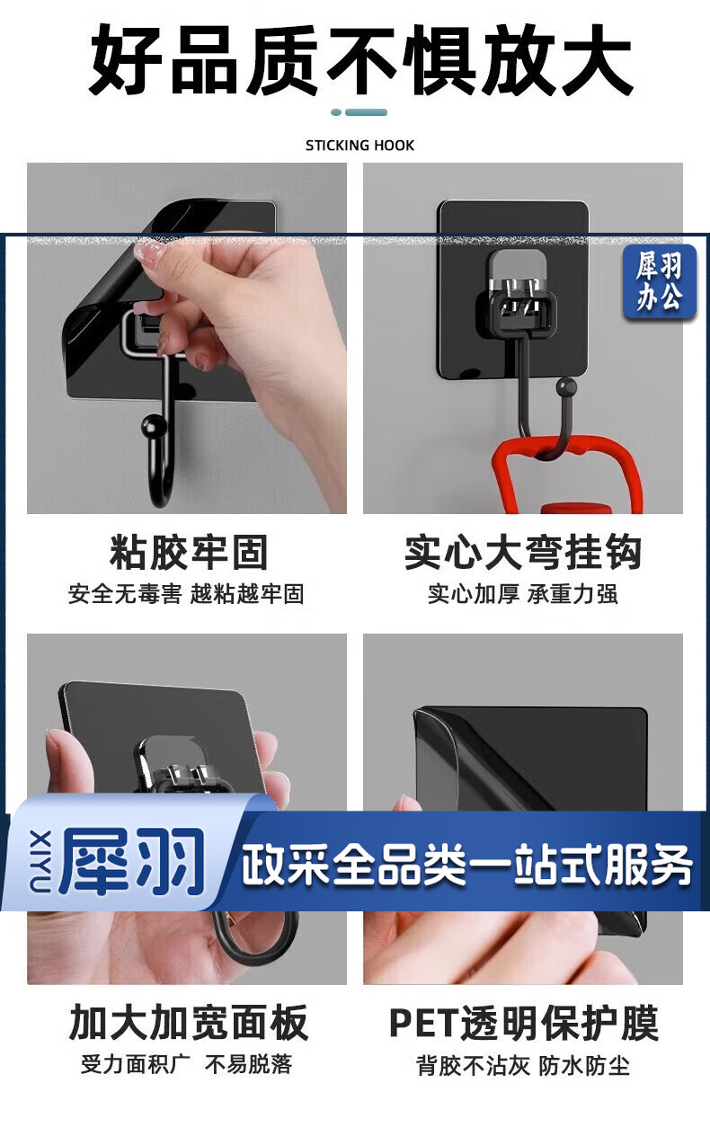 挂钩粘钩强力承重免打孔无痕粘胶厨房墙壁浴室 黑色 30个装