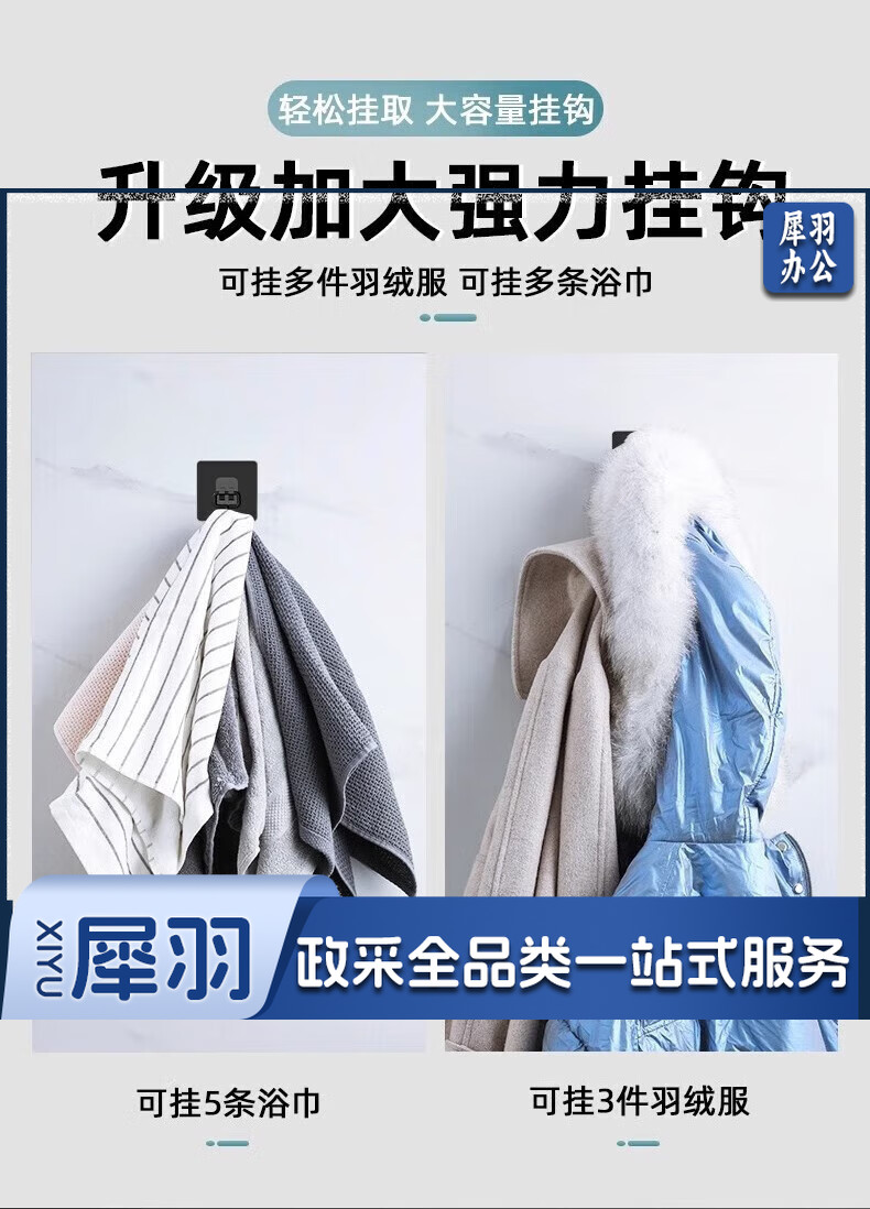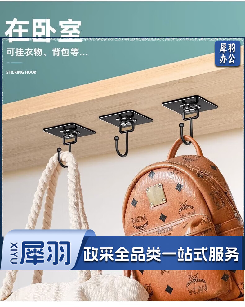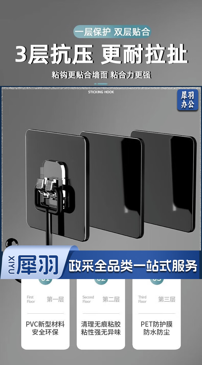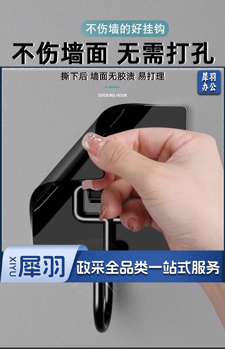 挂钩粘钩强力承重免打孔无痕粘胶厨房墙壁浴室 黑色 30个装