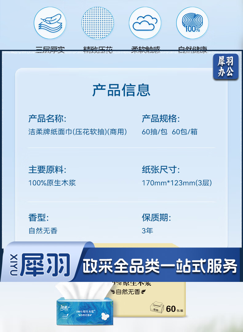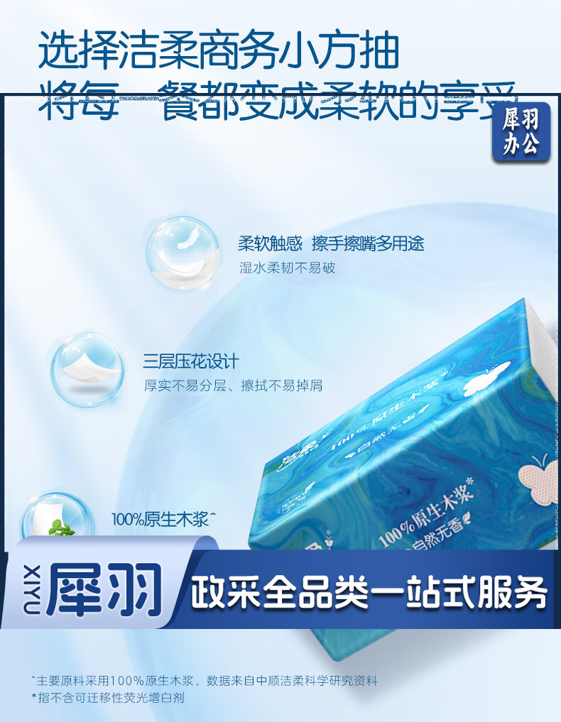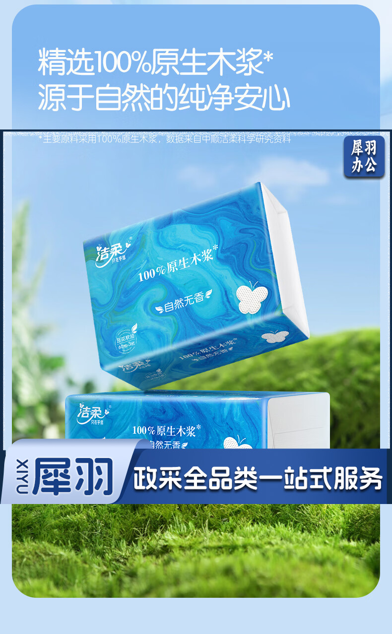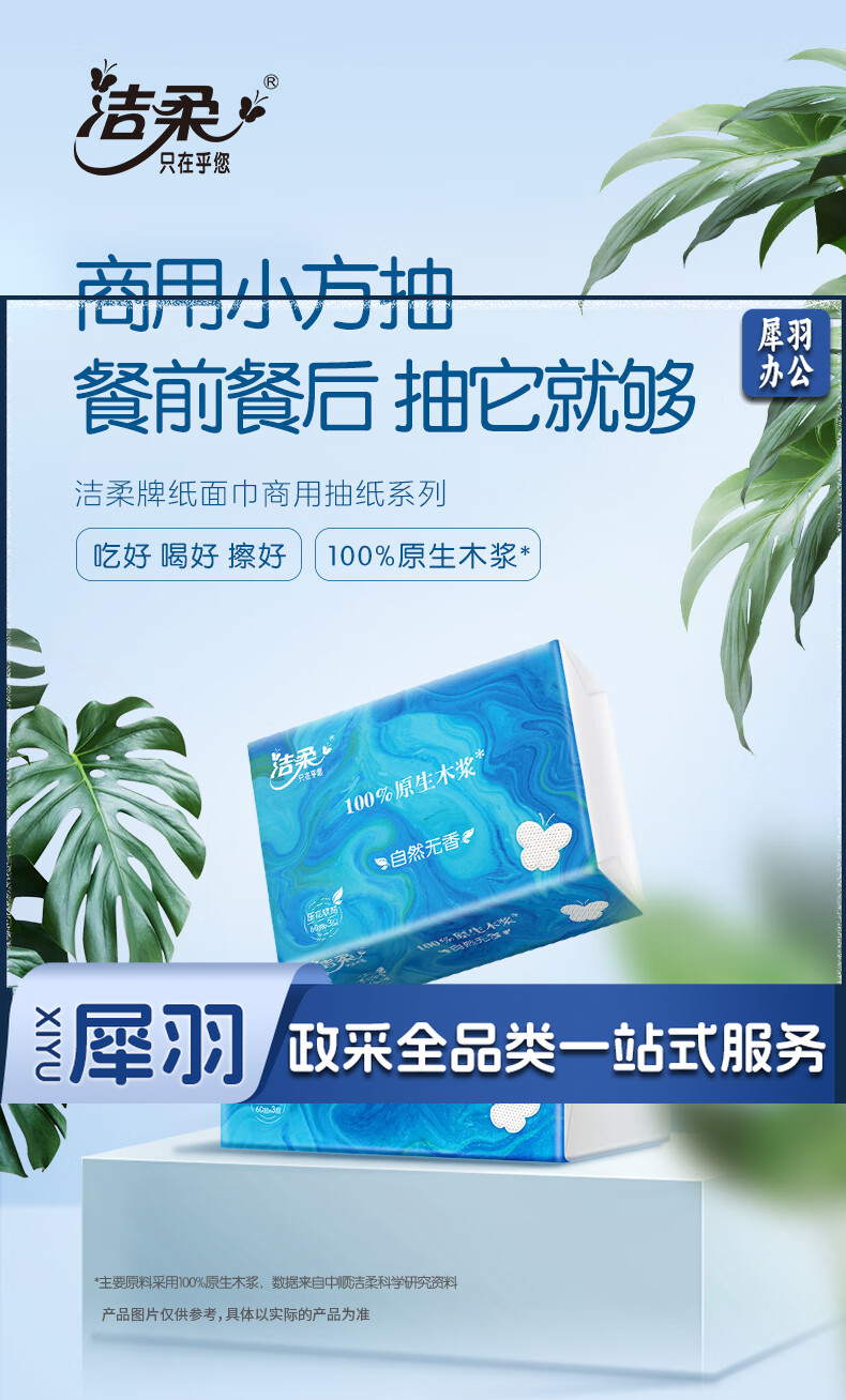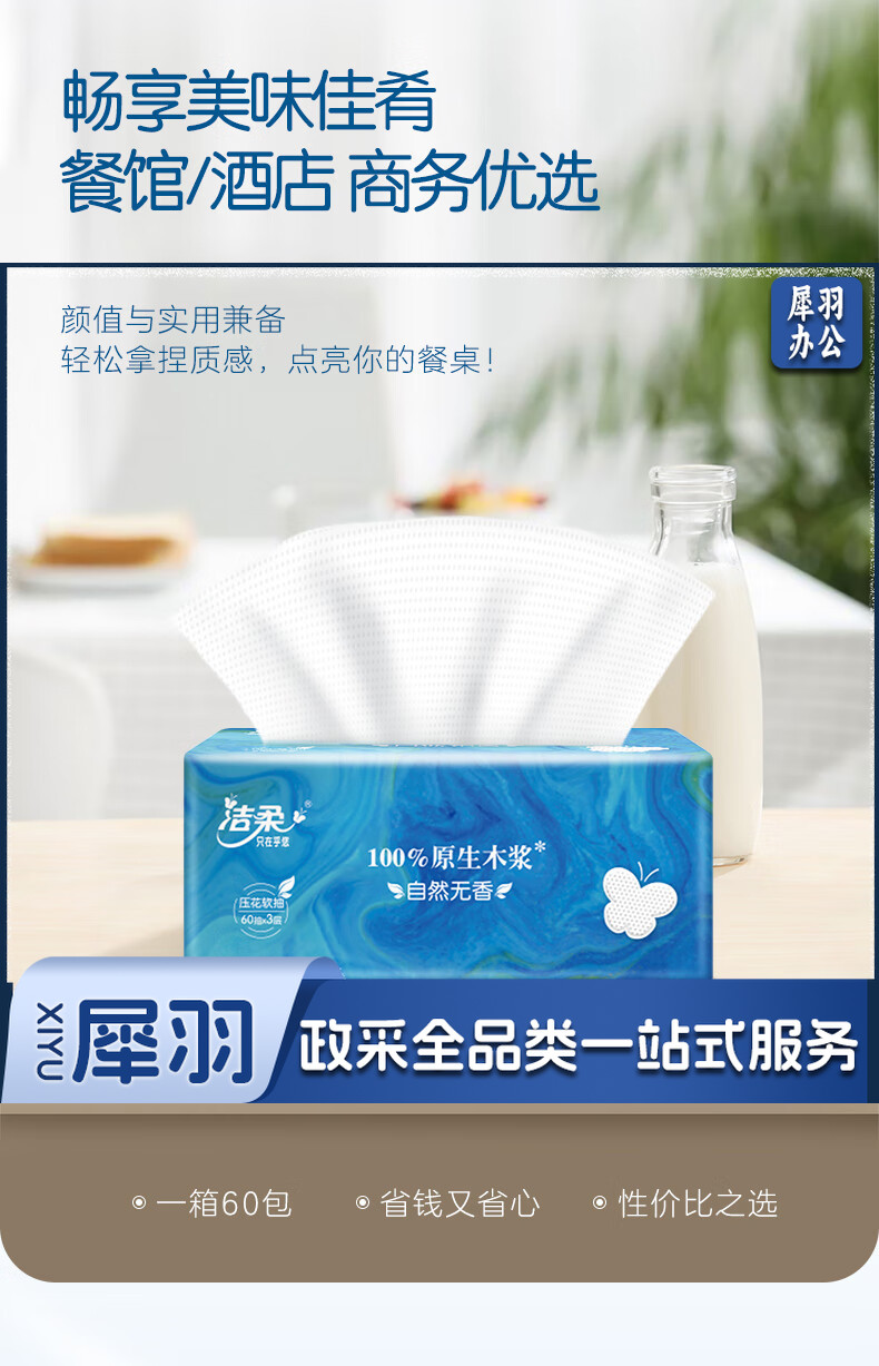 洁柔抽纸 商用3层60包面巾纸 大包纸抽整箱批发餐巾纸卫生纸