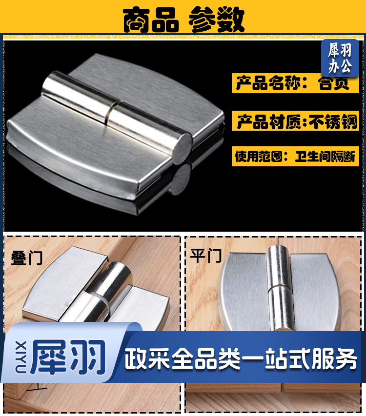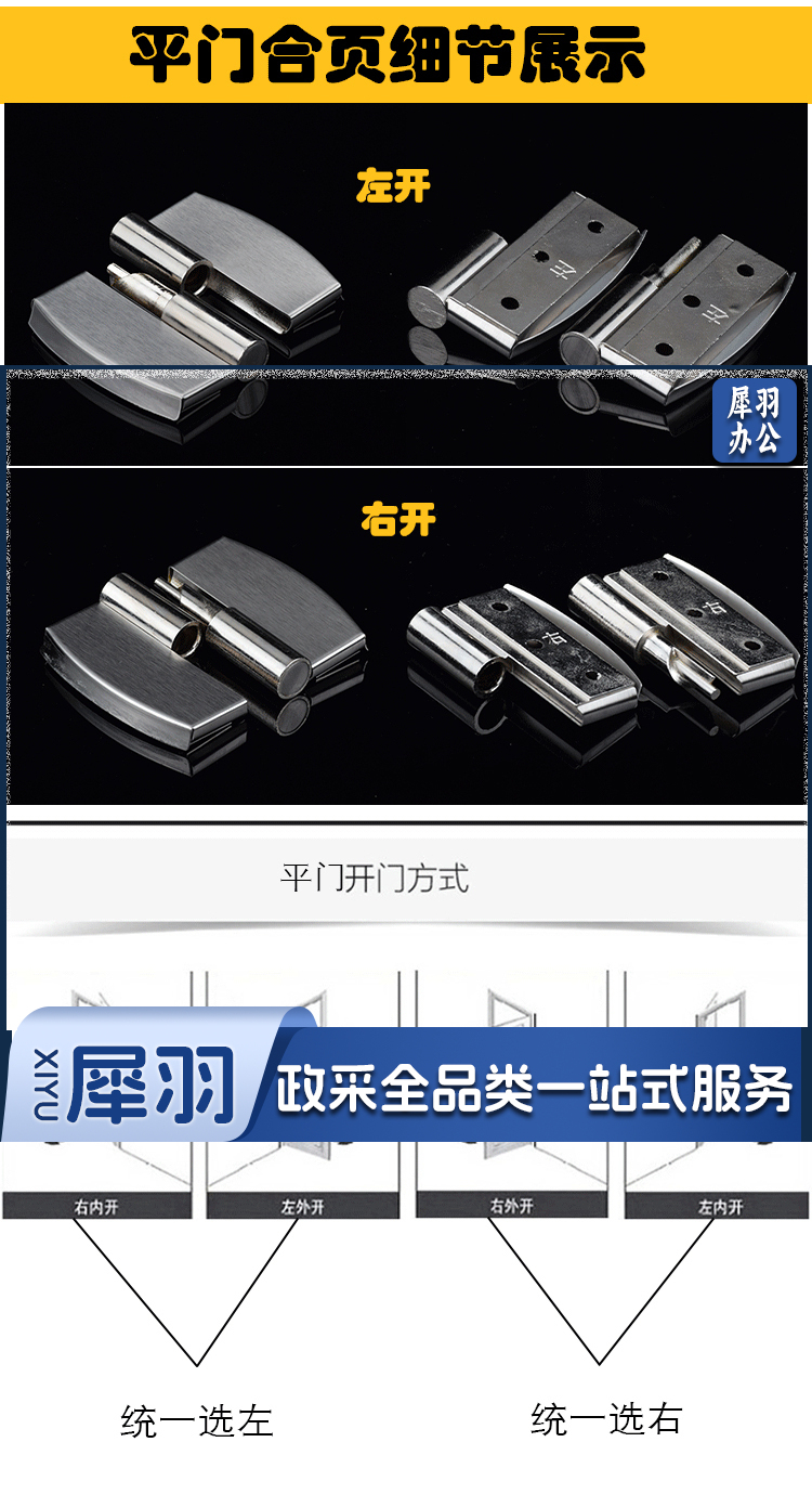 公共厕所卫生间隔断五金配件不锈钢自关闭合页升降平叠门铰链 平门加厚款(右外开)