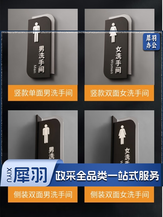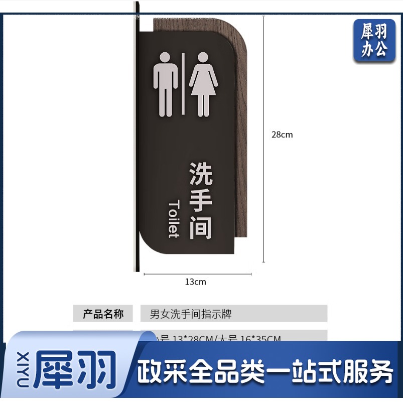 高档男女卫生间指示牌 酒店WC厕所标识牌 门牌双面侧装洗手间提示牌 13x28cm 男女竖一对 深木纹