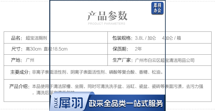 超宝(CHAOBAO)强效洁厕剂商用大桶实惠装污渍清洁卫生间酒店车站超市机场去污马桶清洁剂清洁液洁厕液 3.8L