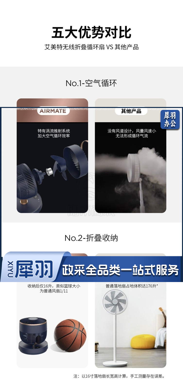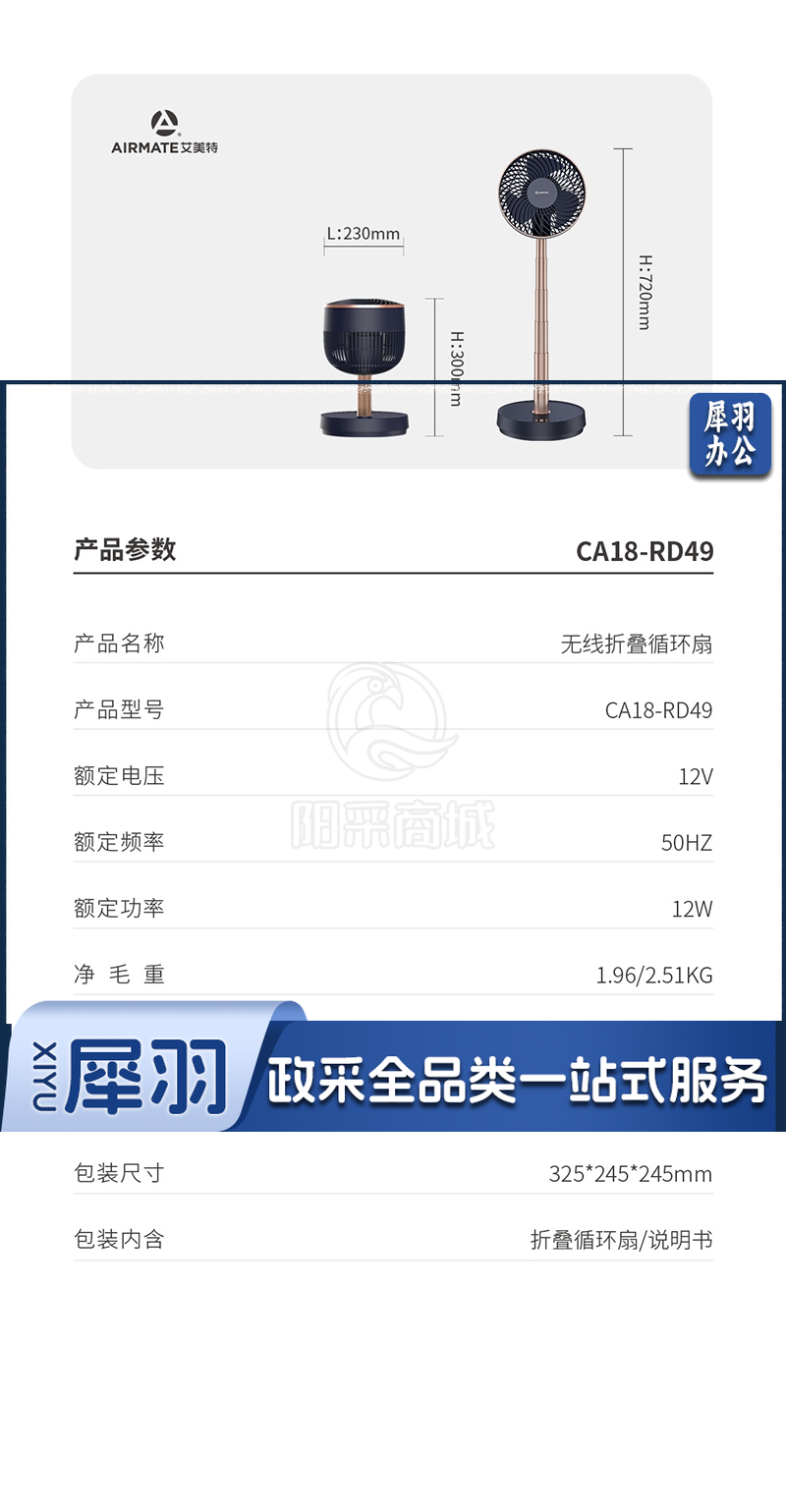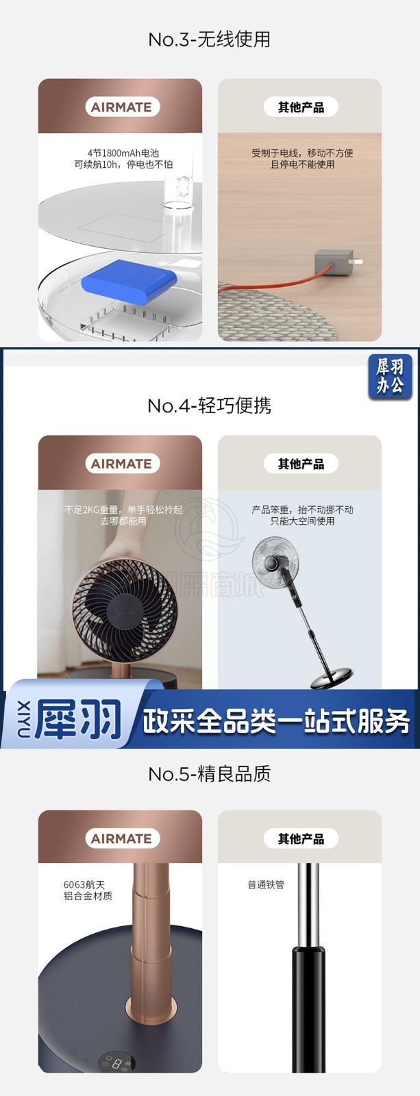 艾美特 电风扇CA18-RD49 米金/台(空气循环扇家用落地扇台立式定时办公室风扇)