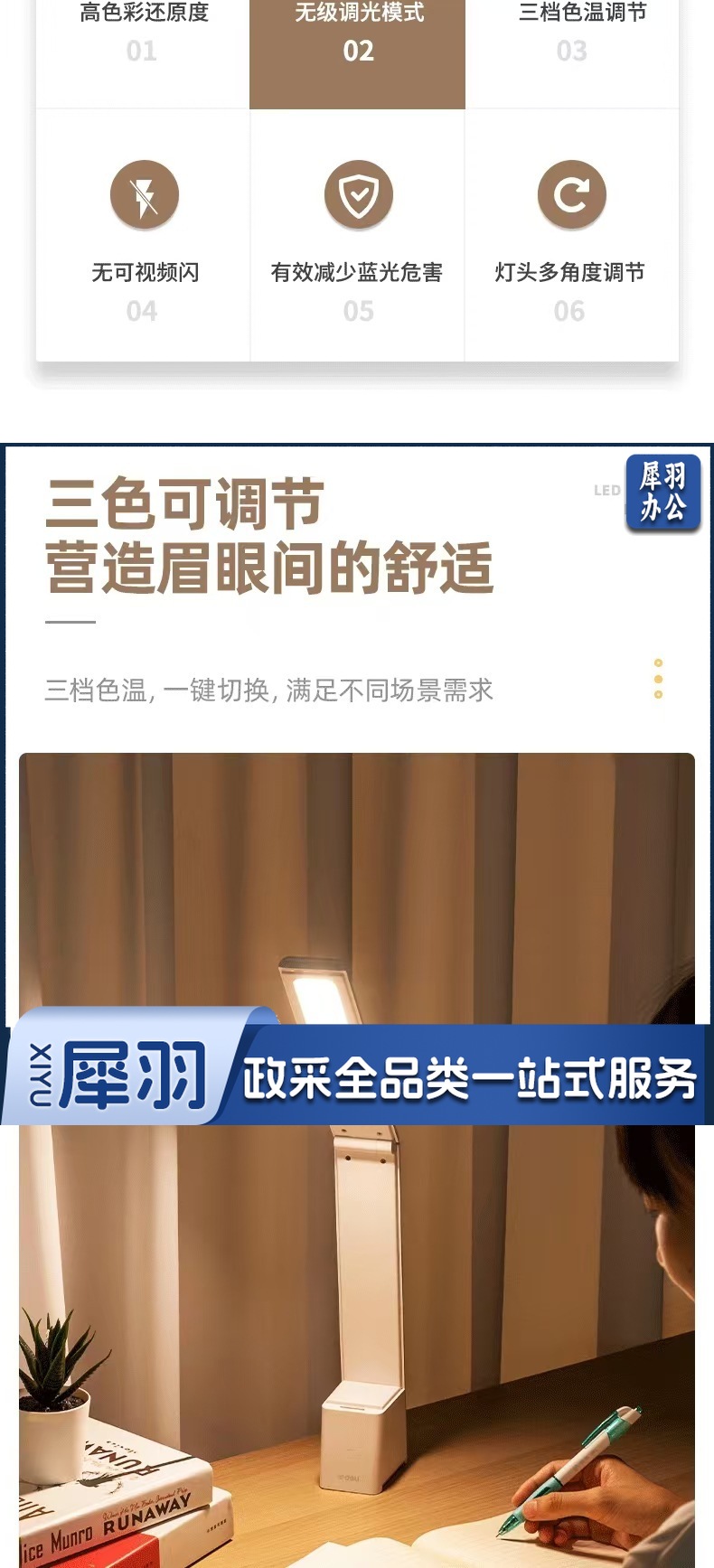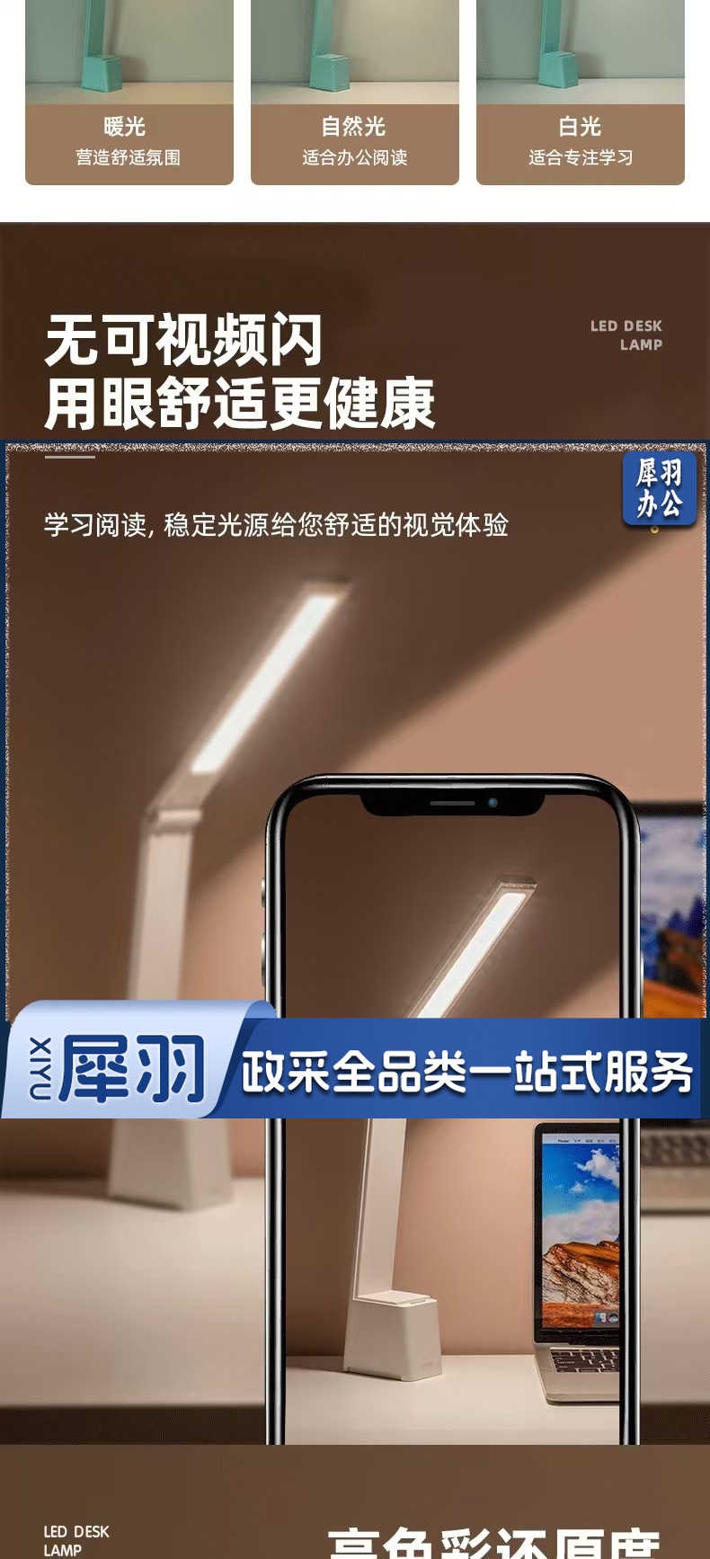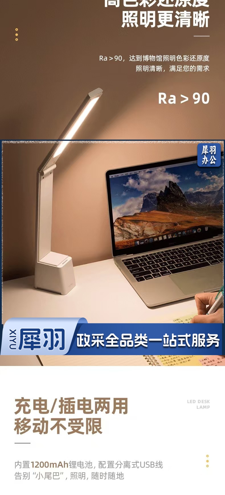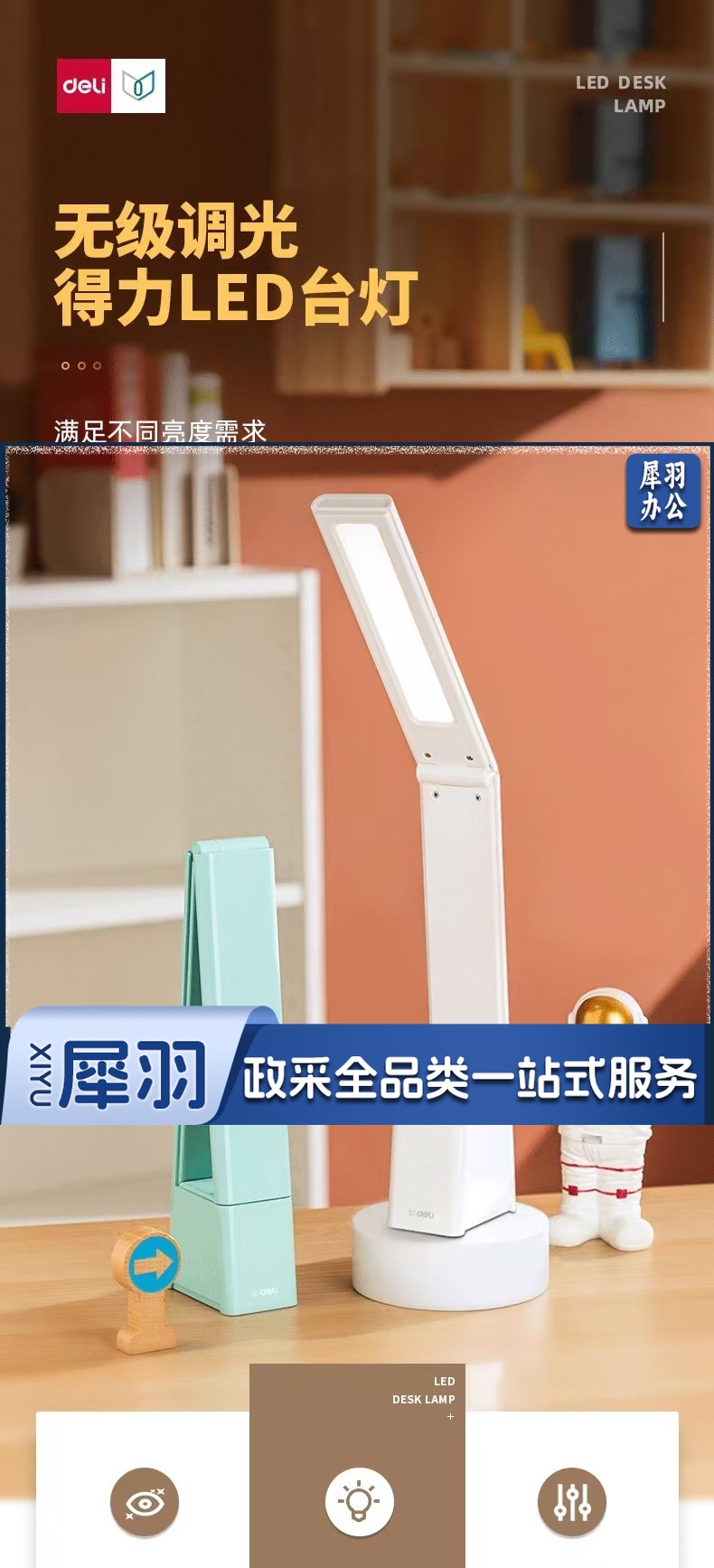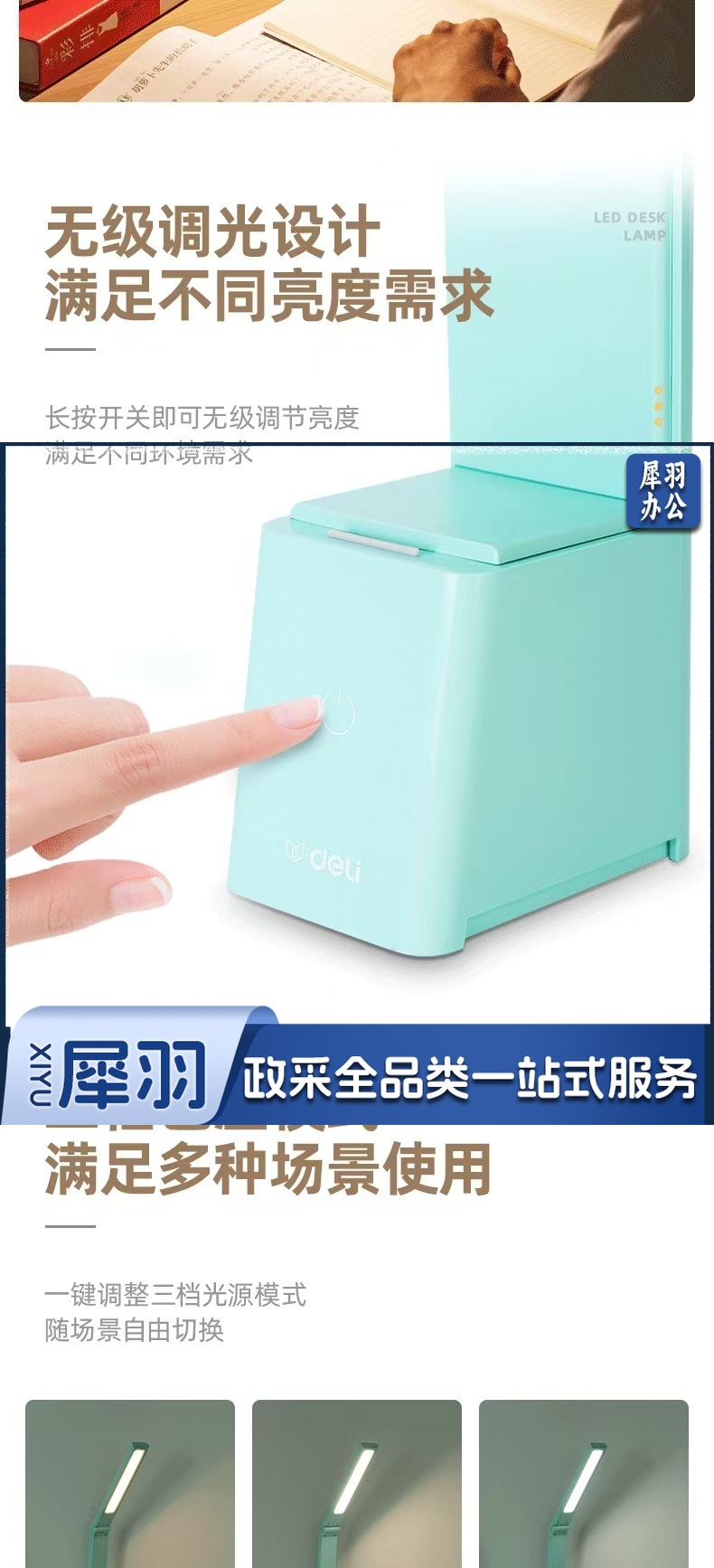 得力LF201_LED台灯(灰色)(1台装/盒)台灯学生阅读学习灯调光床头灯简约时尚书房灯LED可充电