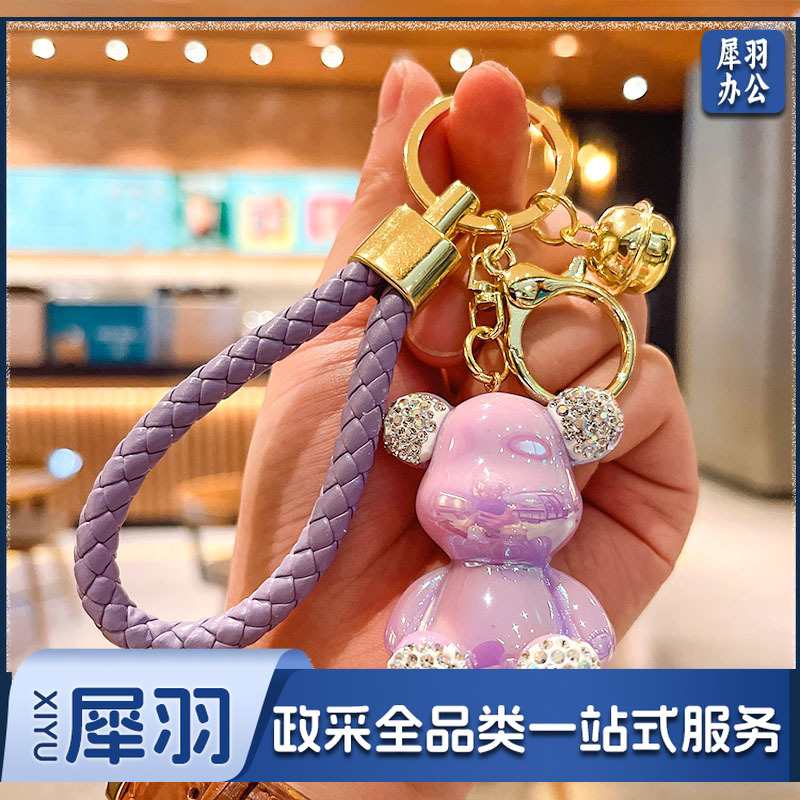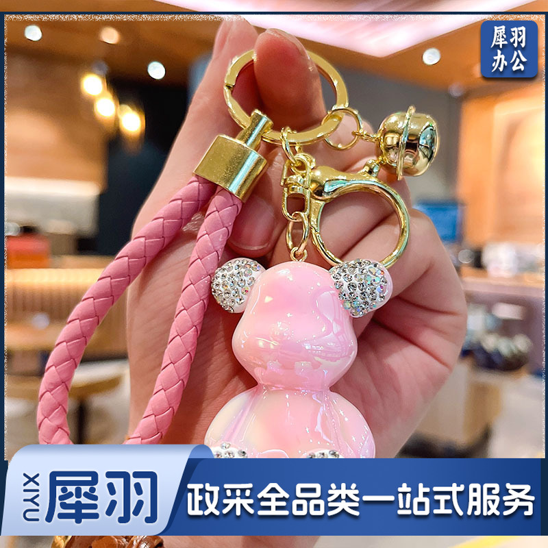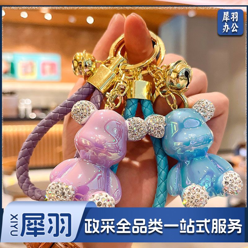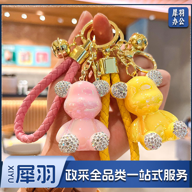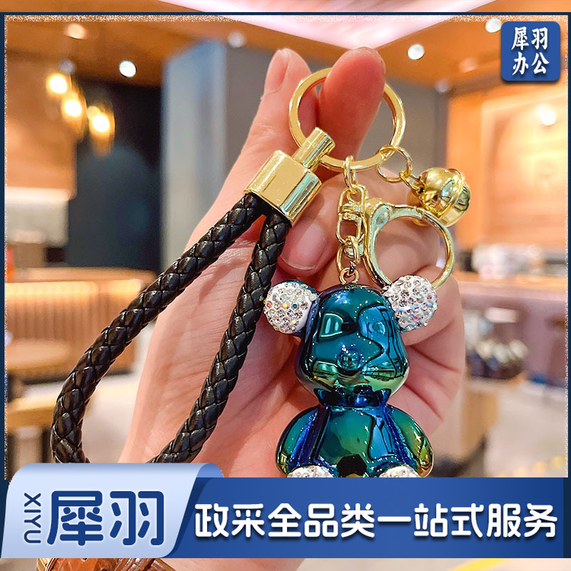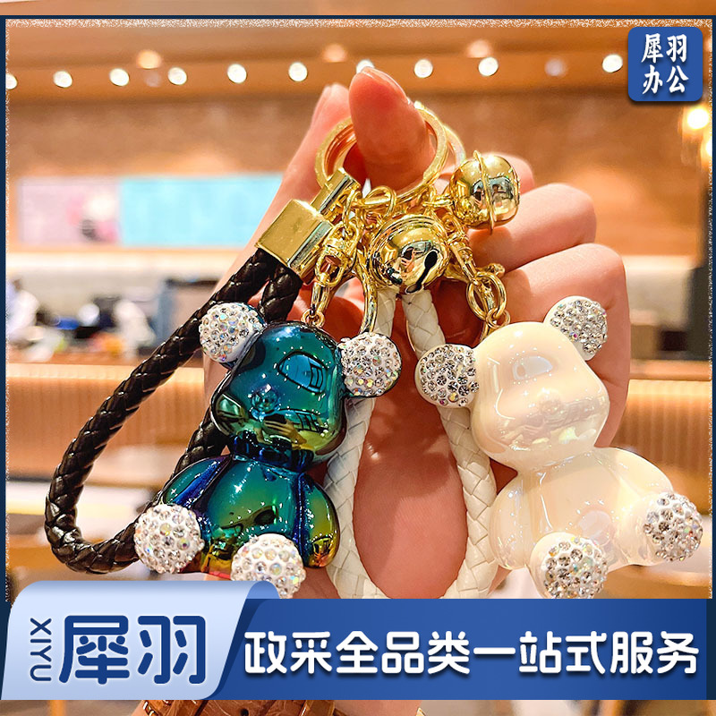 卡通镶钻亮面暴力熊汽车钥匙扣挂件女学生包包挂饰地推小礼品