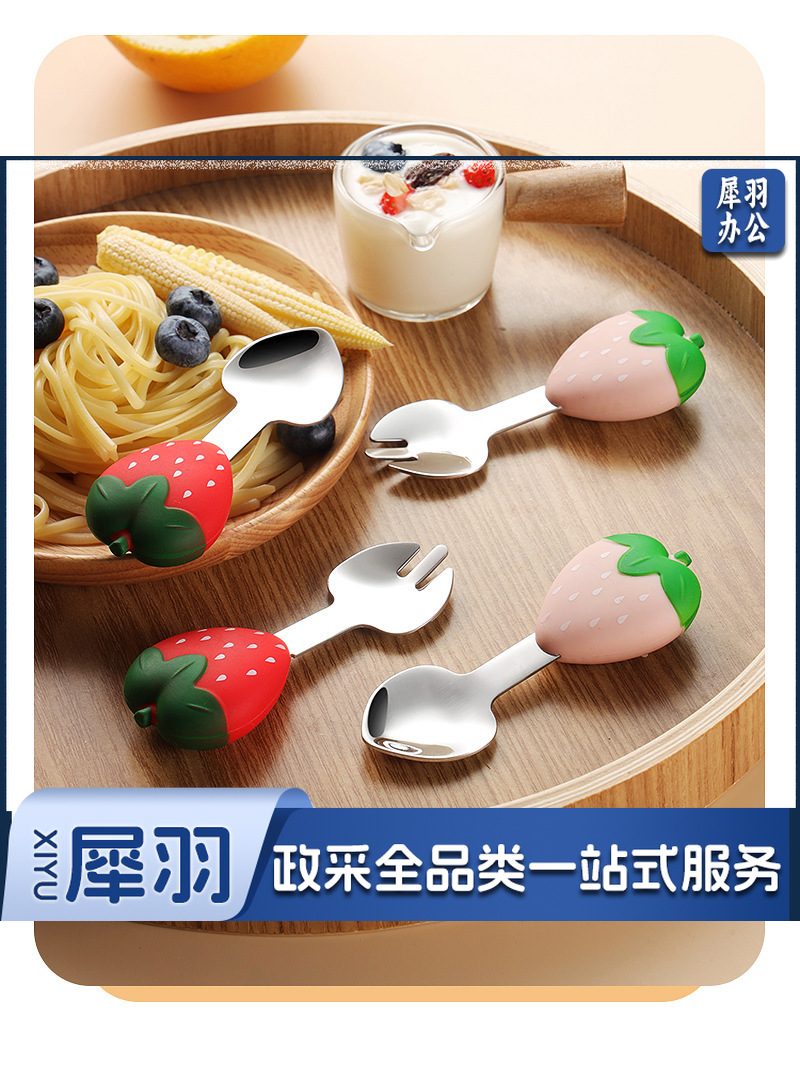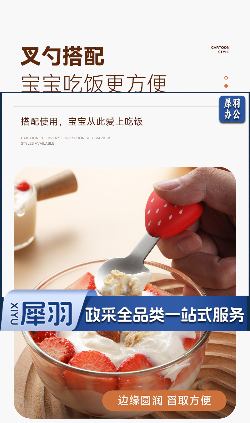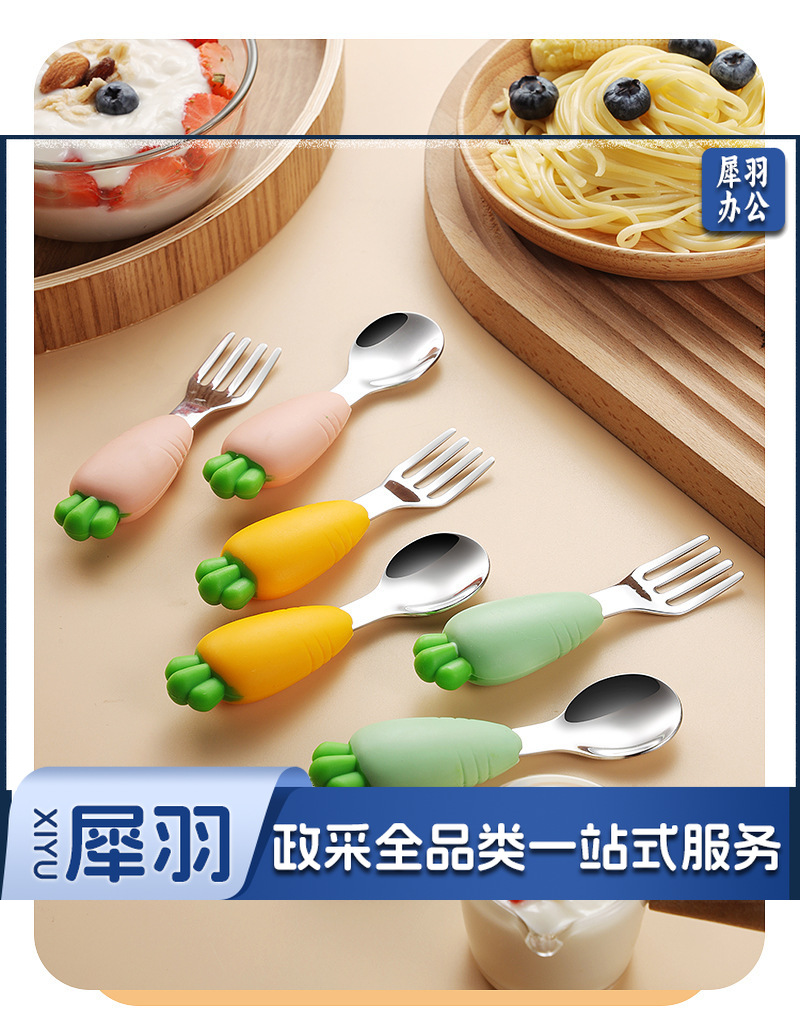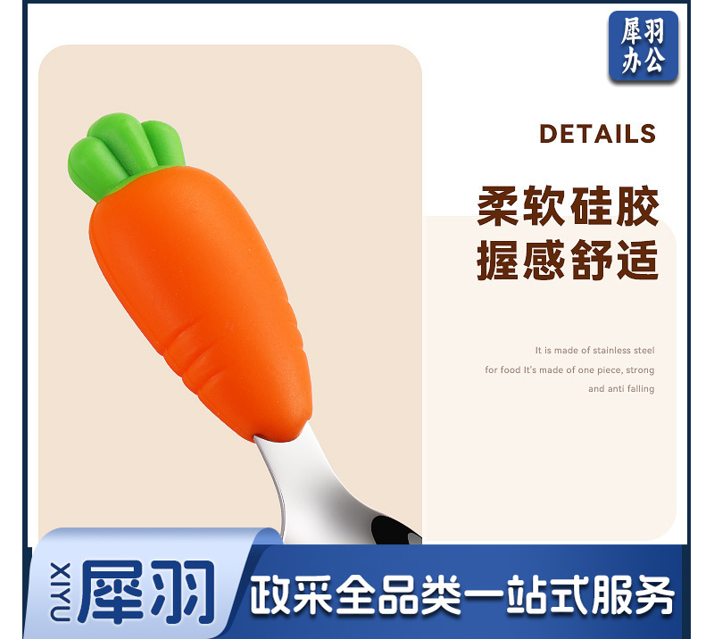 304不锈钢儿童餐具套装硅胶勺子叉子卡通胡萝卜玉米草莓宝宝餐具 (单只勺)
