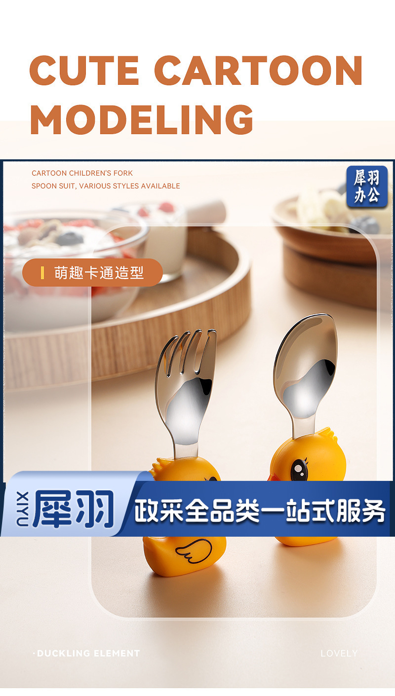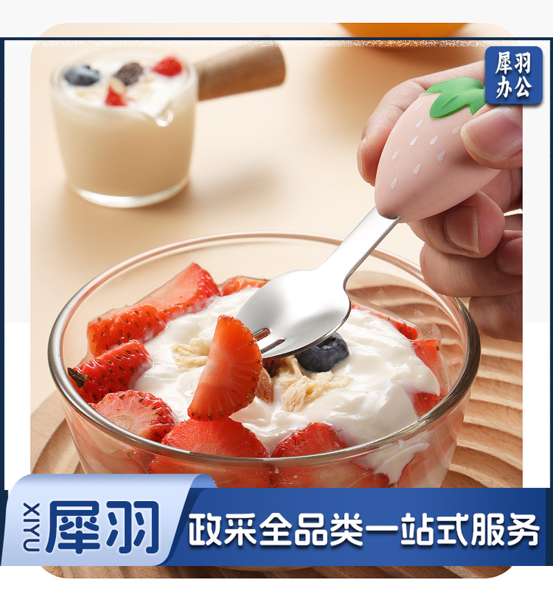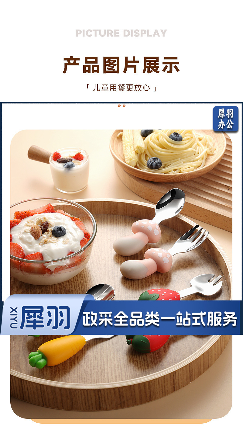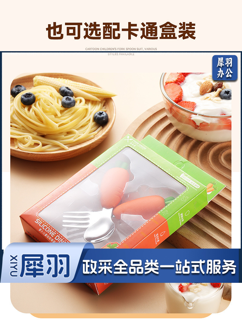 304不锈钢儿童餐具套装硅胶勺子叉子卡通胡萝卜玉米草莓宝宝餐具 (单只勺)