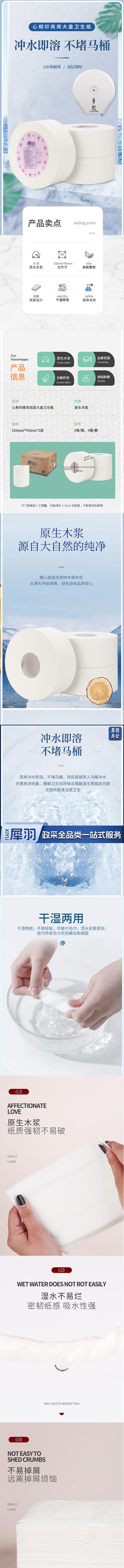 心相印大卷纸 ZB006双层220米12卷商用珍宝大盘纸