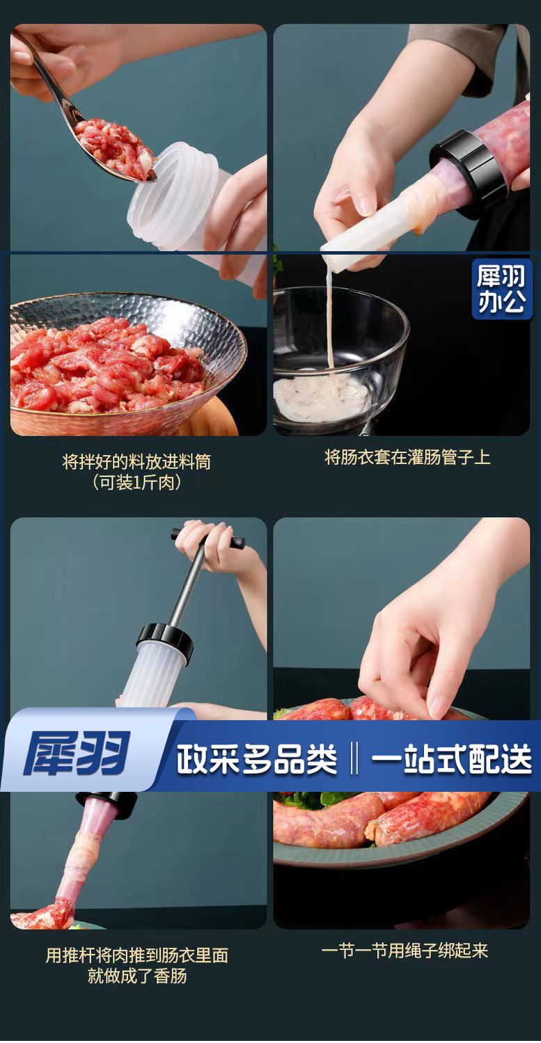 灌肠器手动家用塑料灌肠机器大号腊肠制作手推厨房工具灌香肠机器(大号手推式灌肠器一套)