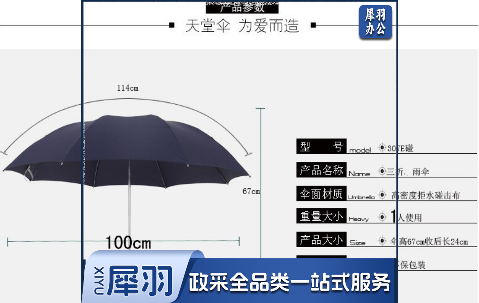 天堂307E碰雨伞批发商务折叠晴雨伞拒水碰击布一甩干可印LOGO广告(伞面弧度114cm/8K)