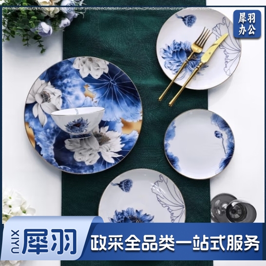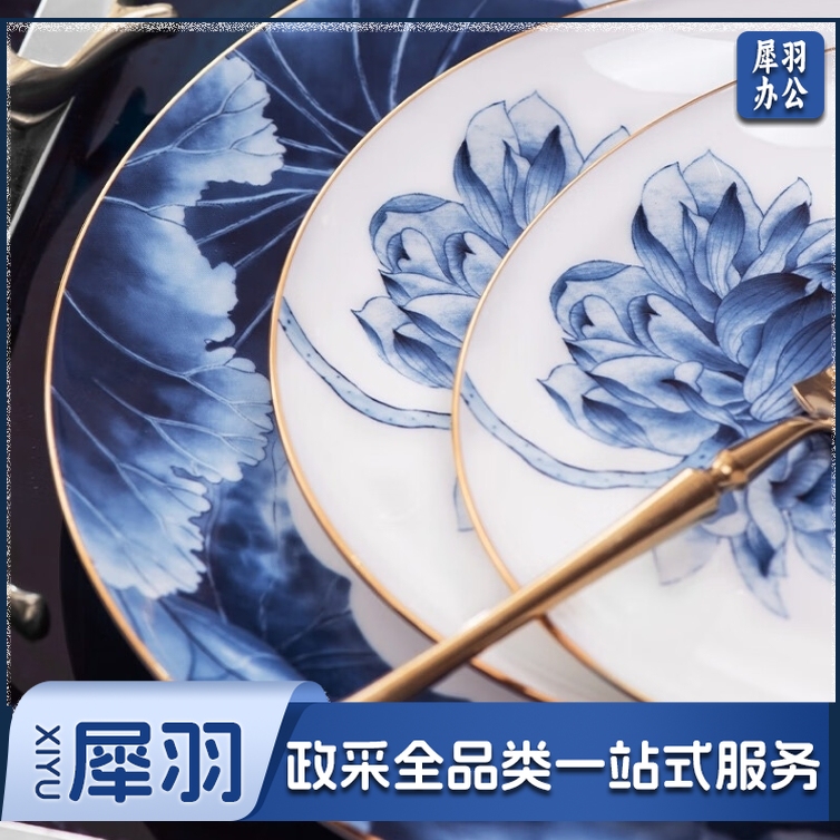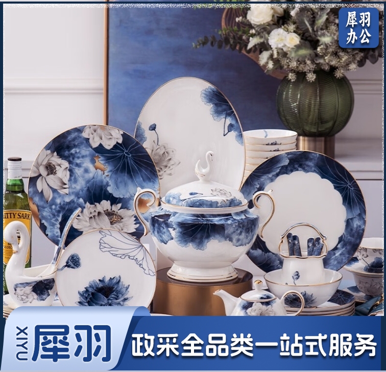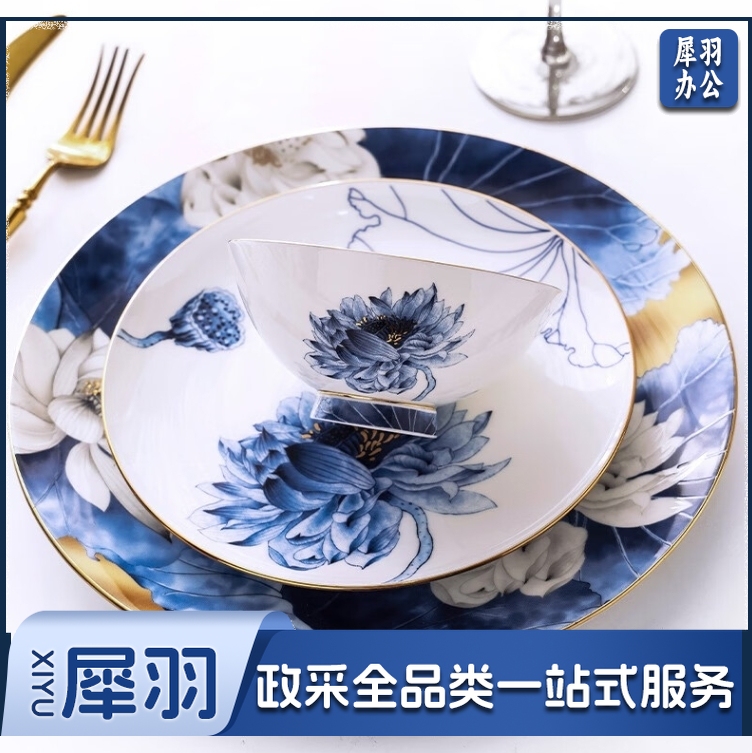 景德镇 陶瓷餐具中式轻奢酒店摆台骨瓷碗盘组合家用面碗汤碗