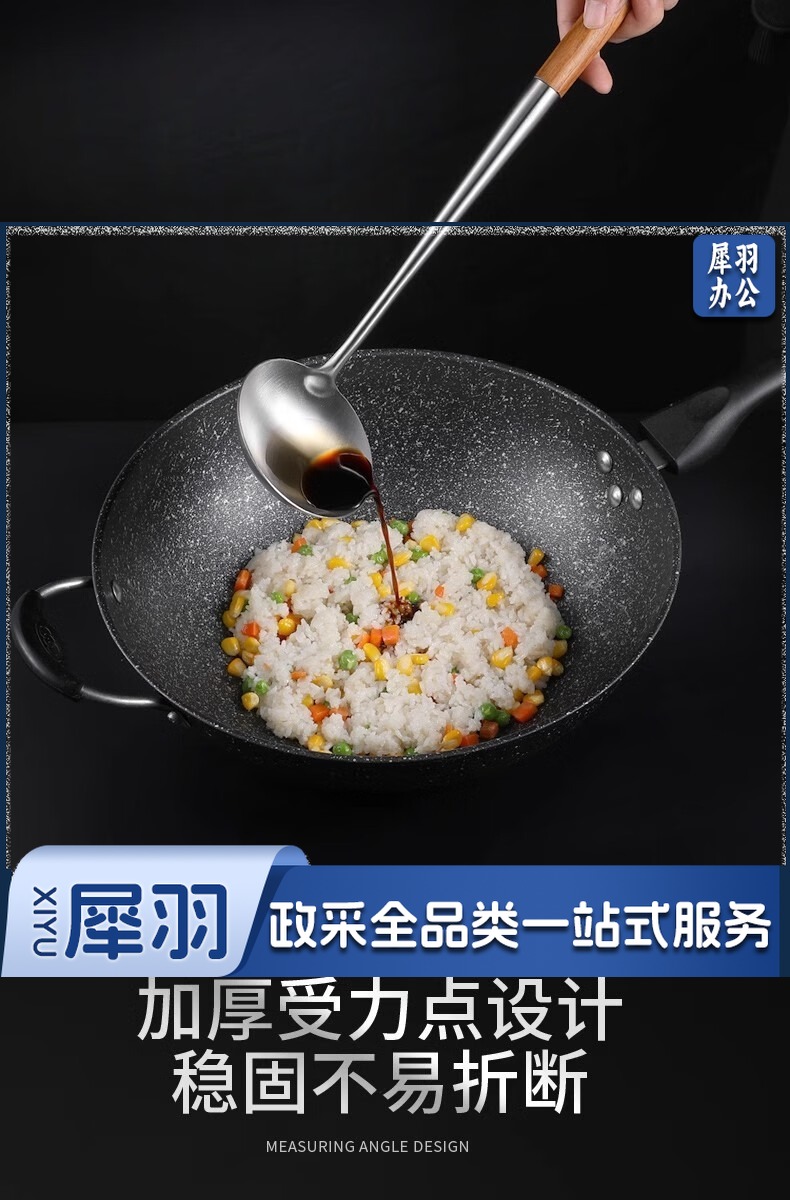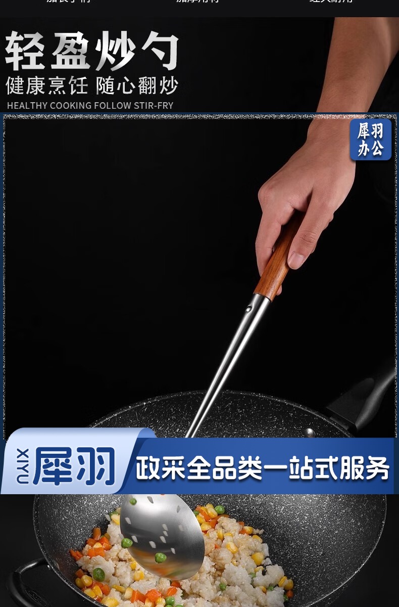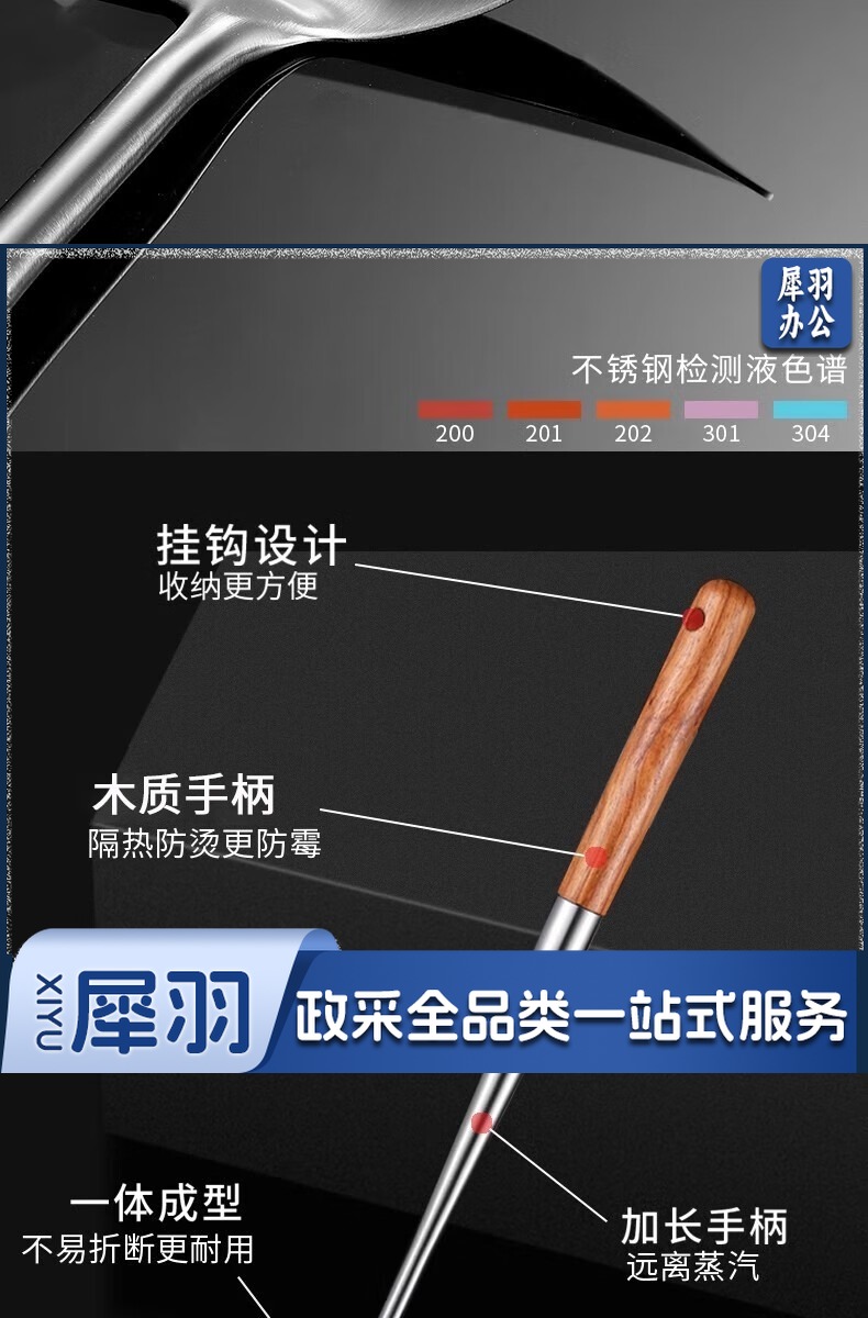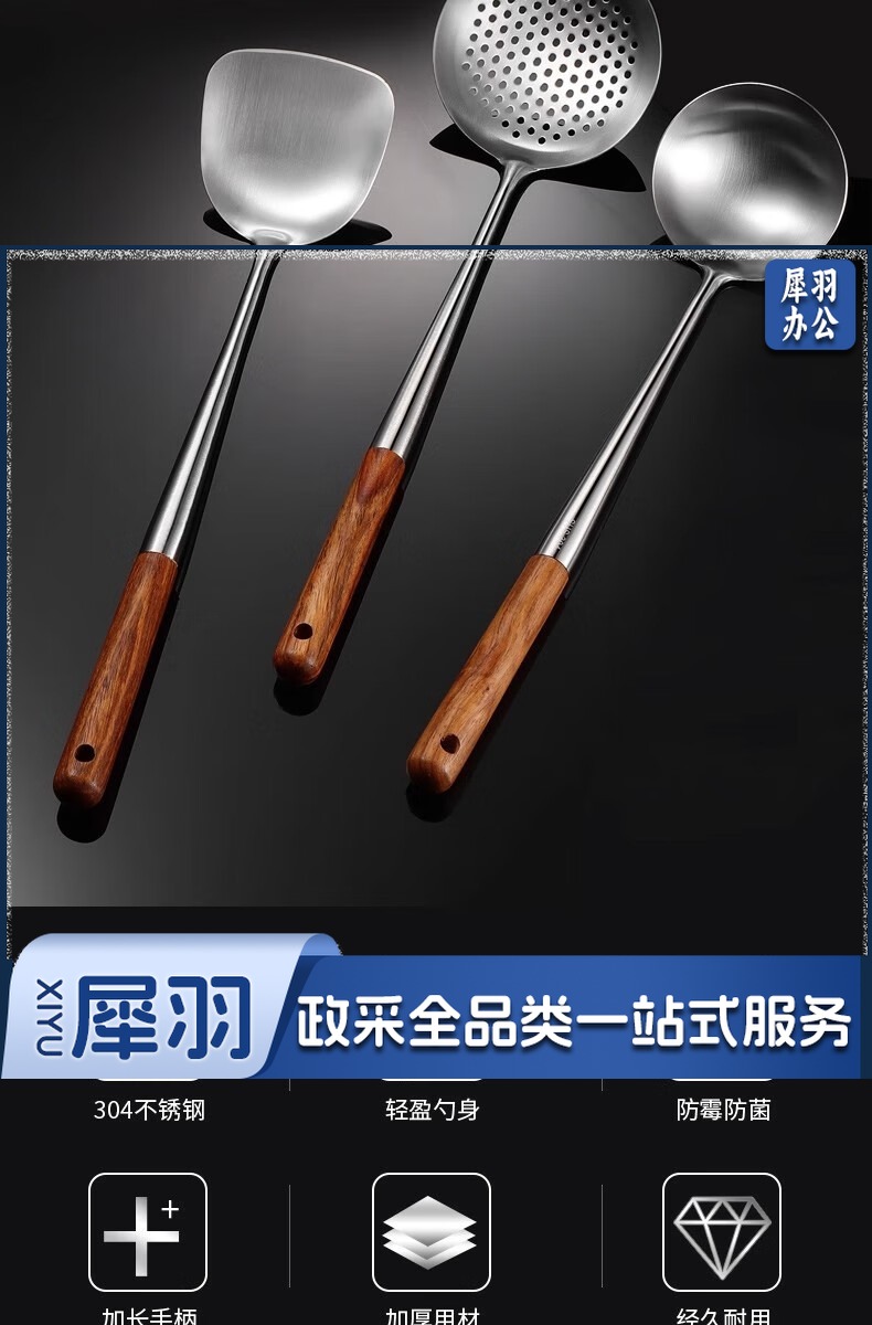 304不锈钢长木柄锅铲炒菜铲勺家用厨房漏勺铲子厨具三件套装 304防烫木柄(加长柄)锅铲 全套勺铲