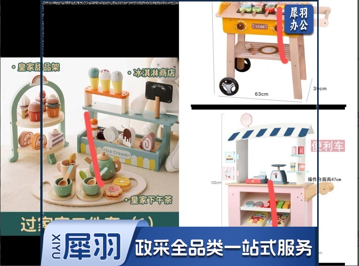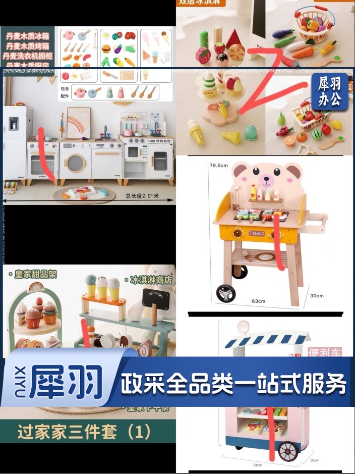 玩具详情:冰箱*1,洗衣机*1,厨房*1,橱柜*1,过家家三件套*1,冰激凌车*1