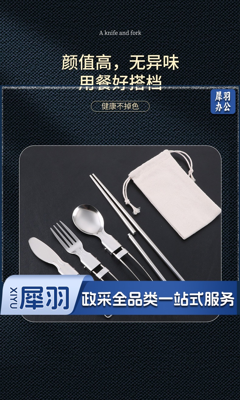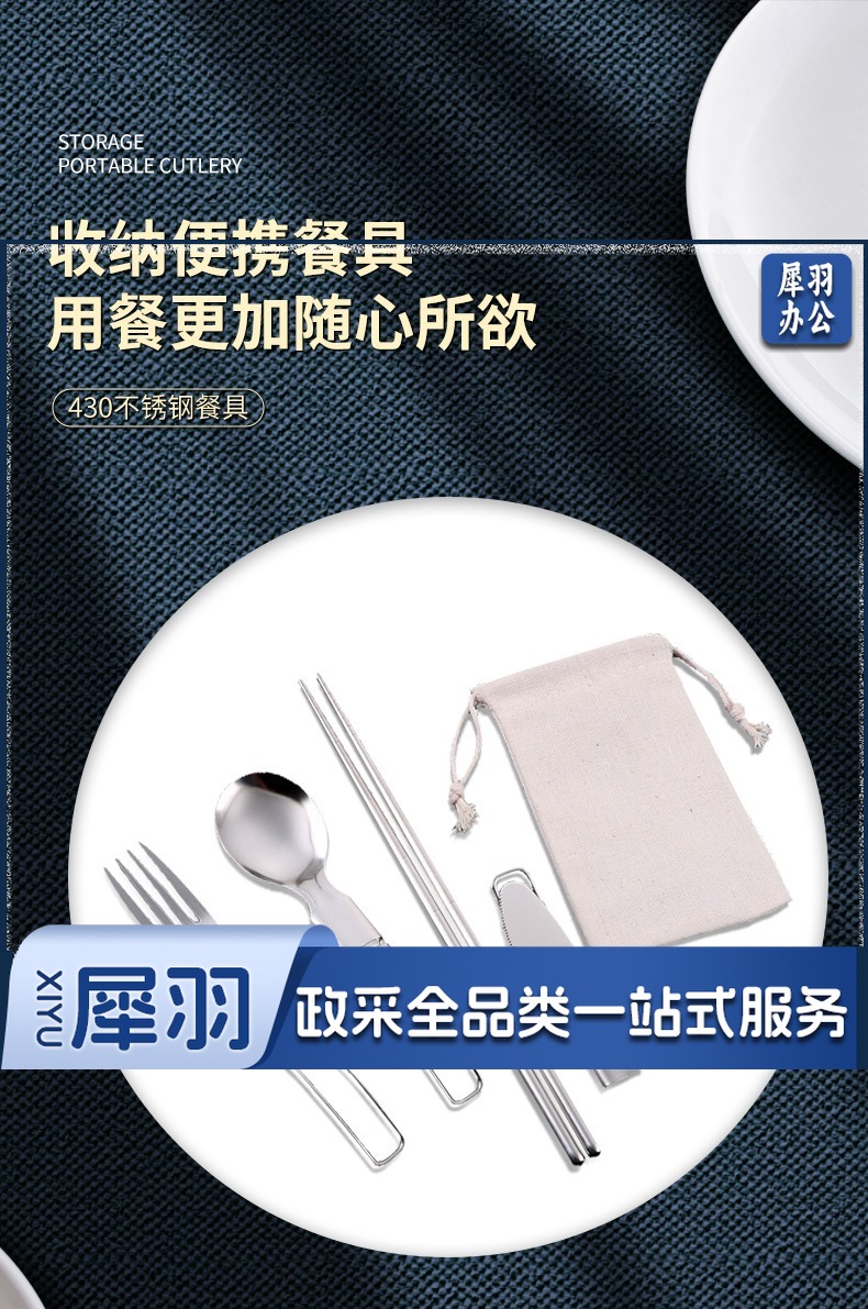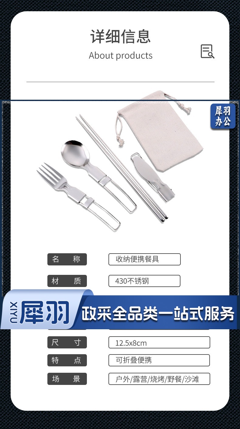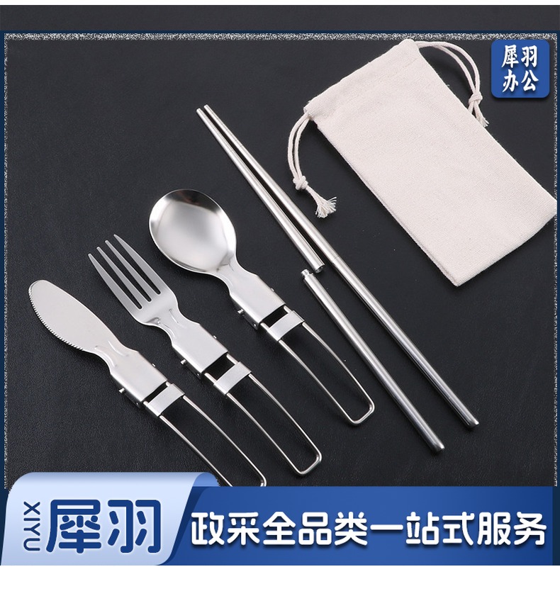 JOYTOUR 户外餐具露营野营野餐烧烤便携不锈钢餐具厨具刀叉子勺筷子套装 5件套 便携/折叠