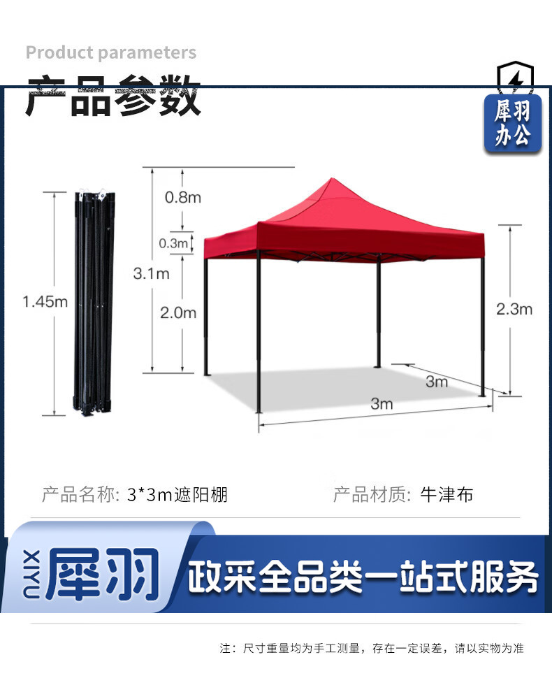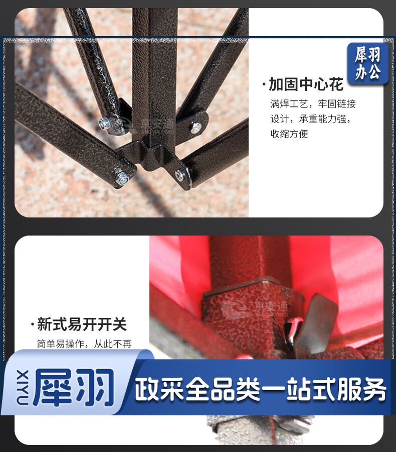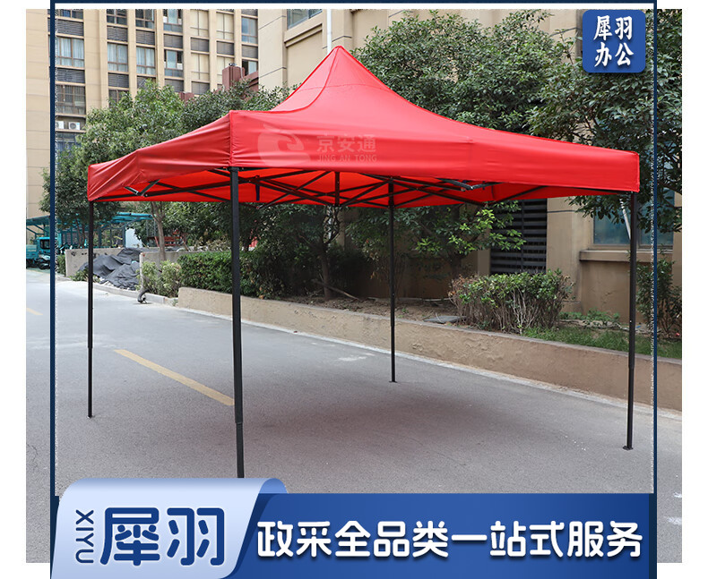 雨棚遮阳棚 户外加厚遮阳折叠式四脚太阳伞停车棚 3*3m红色 jat-zp0174