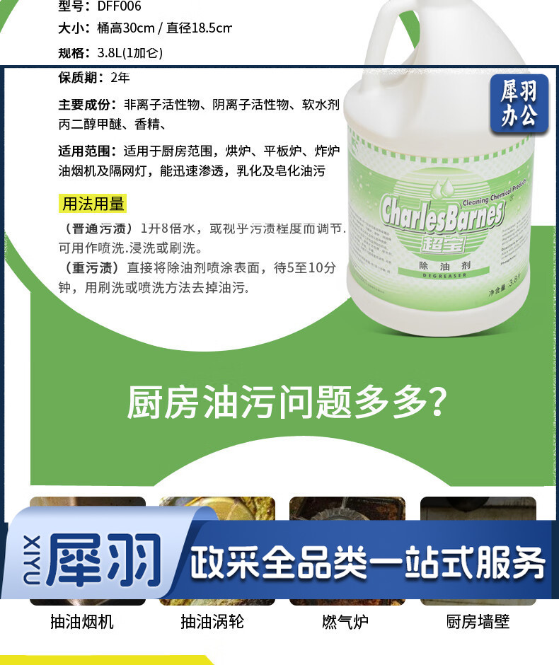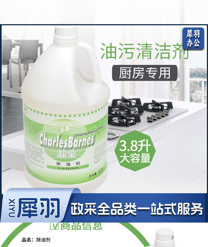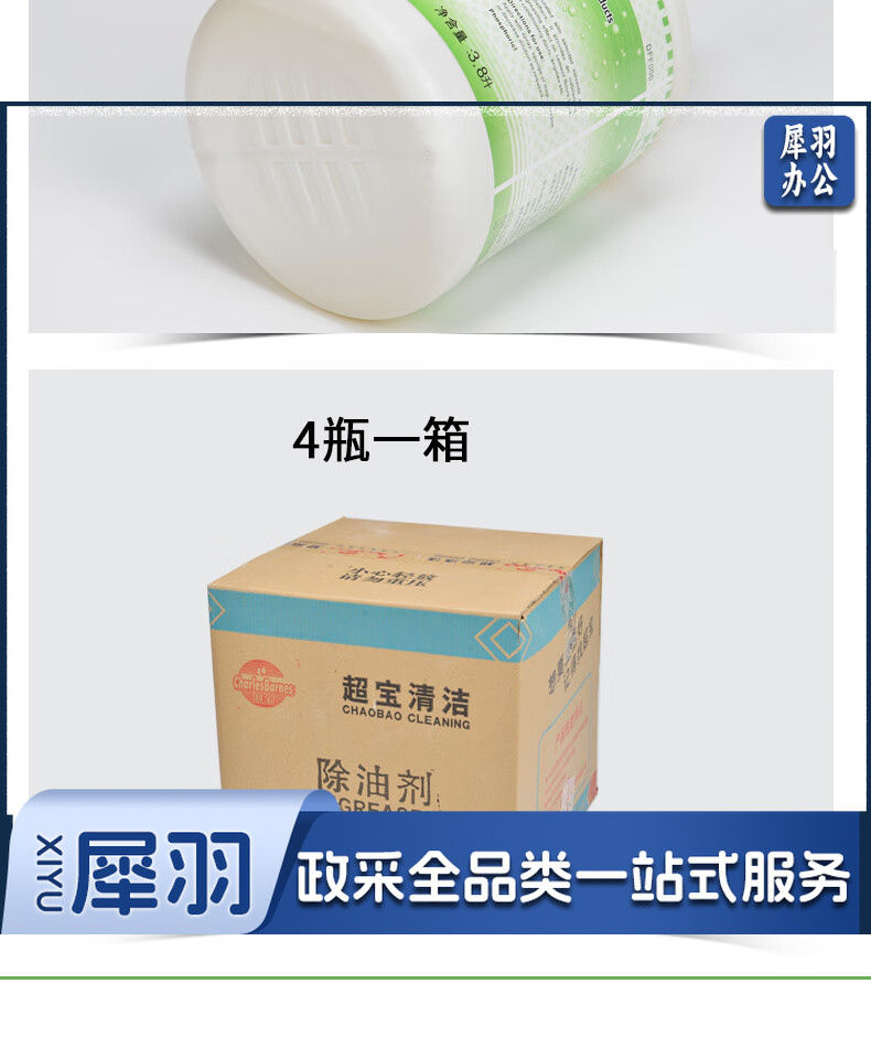 超宝(CHAOBAO) 强力除油剂 3.8L*4 厨房重油污清洗剂酒楼餐馆不锈钢厨具除油 DFF006