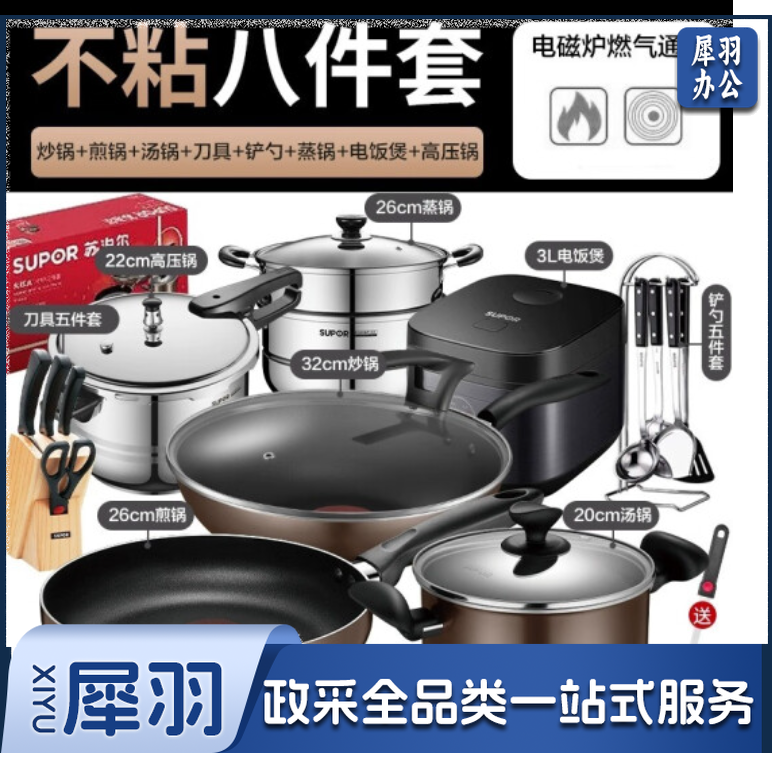 苏泊尔(SUPOR)锅具套装不粘锅家用不粘菜炒锅平底锅厨房全套装锅电磁炉燃气通用 居家[乔迁送礼厨具一整套] 8件套