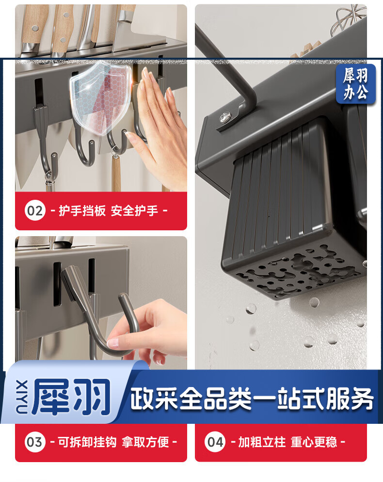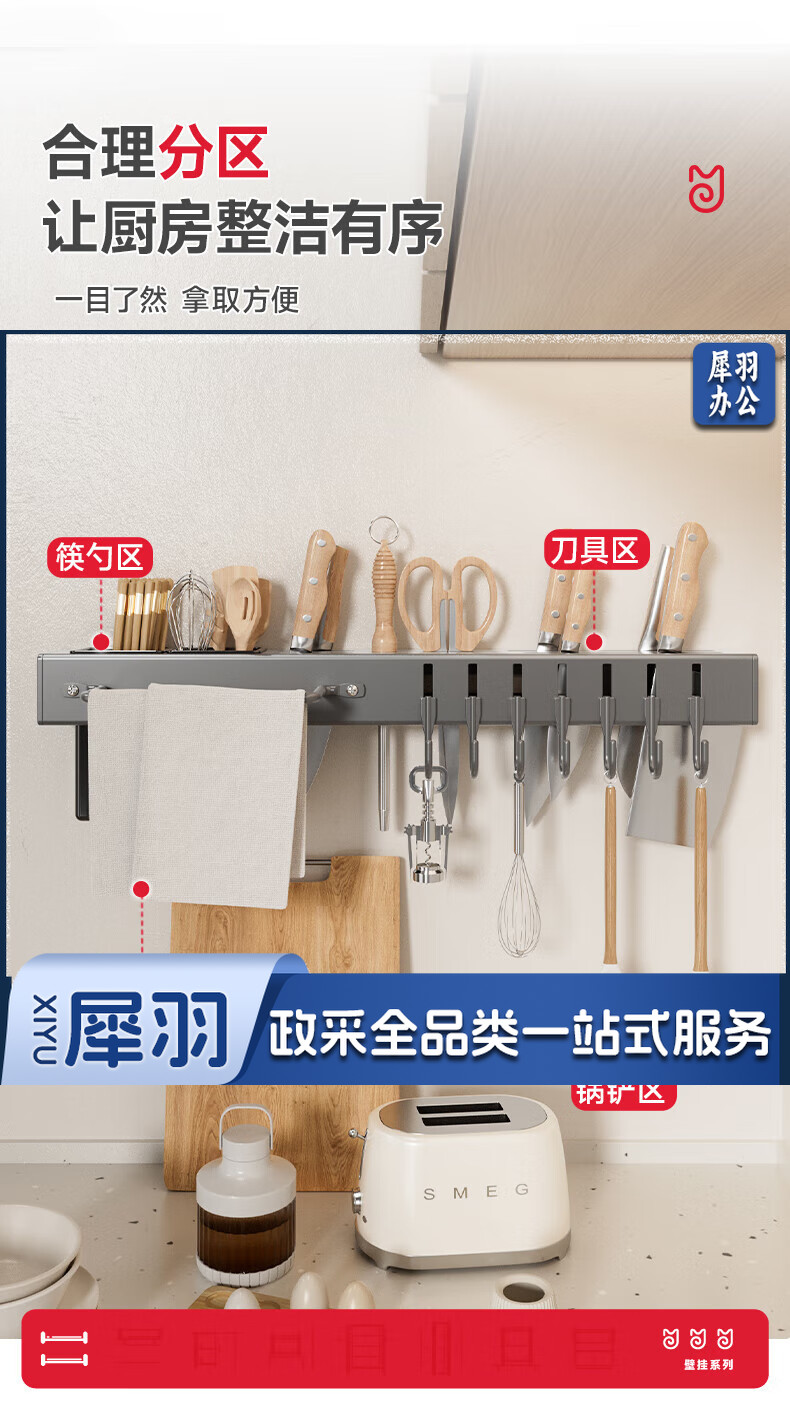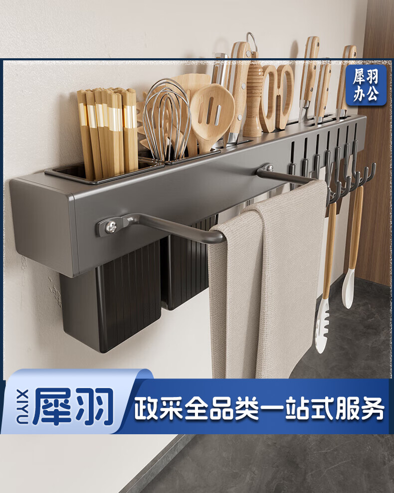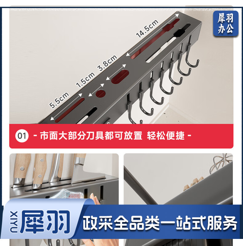 厨房刀架壁挂多功能收纳盒用具放筷子菜刀厨具刀具收纳架子 50cm双桶+档刀板+杆+8挂钩